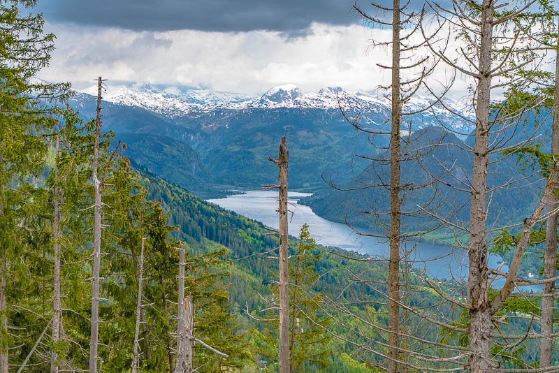 The route through the forest is not so interesting for a picture. On the summit, near the view tower, a beautiful view to Altaussee and lake Altaussee.