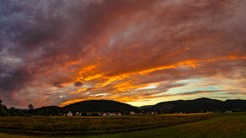 Wieder daheim und im Büro, fahre ich am nächsten Montag am Abend noch einmal kurz auf die Felder, um das herrliche Abendrot zu bestaunen.