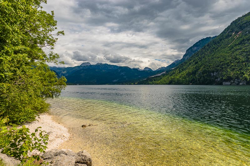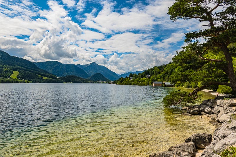 Ein Stück den See entlang, und Rast auf einer Bank. Blick Richtung Gössl ...