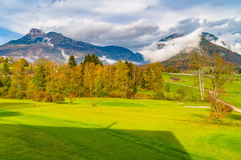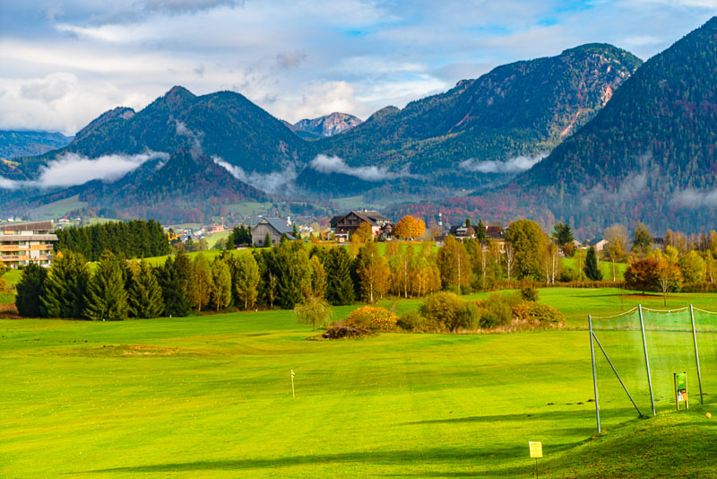 Blick über den Golfplatz Richtung Bad Aussee.