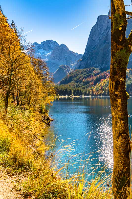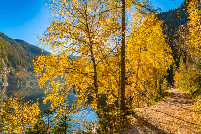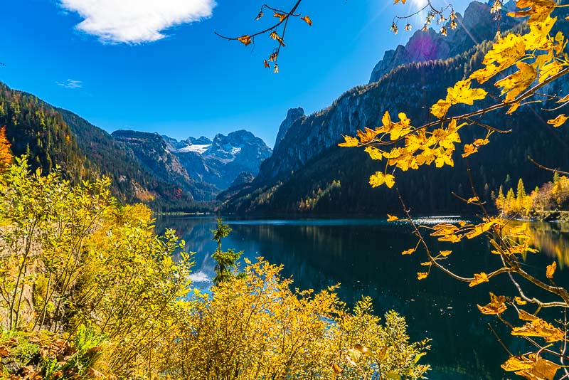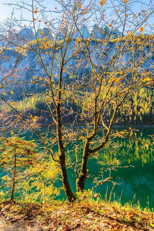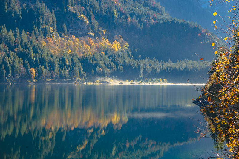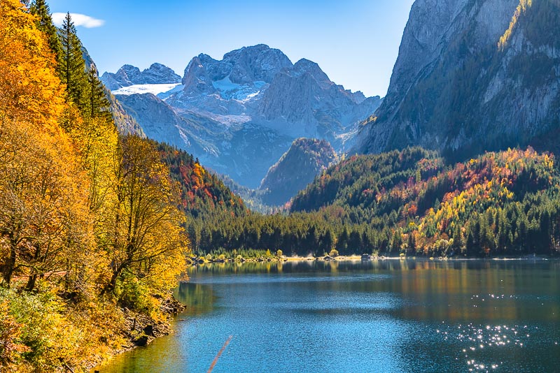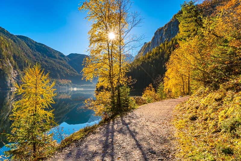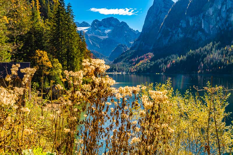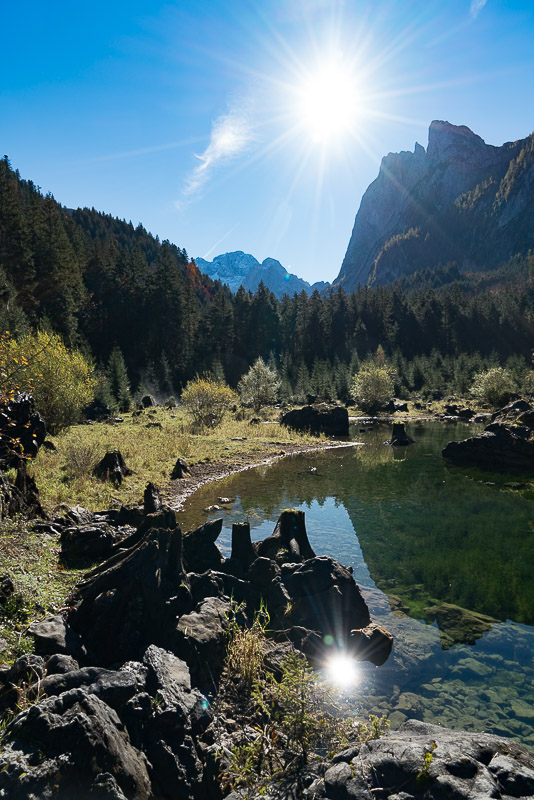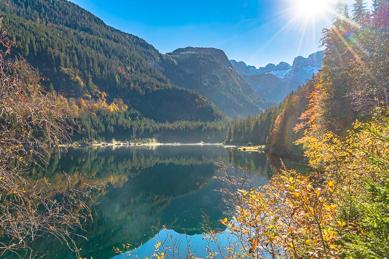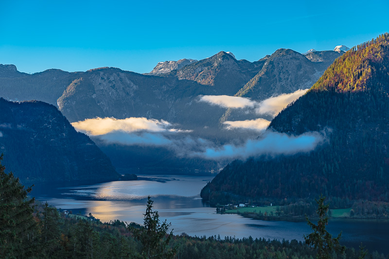 Now and then, also from this side of the lake, the Dachstein can be seen - exactly beneath the low standing sun.