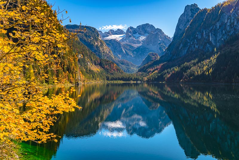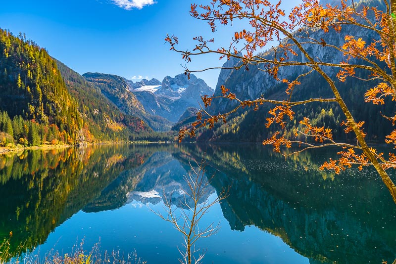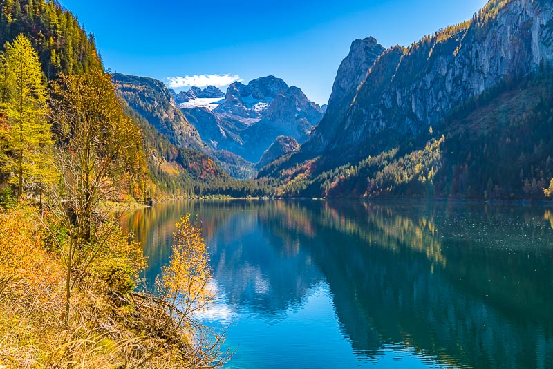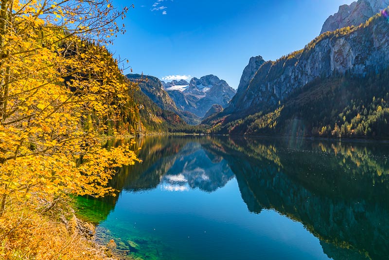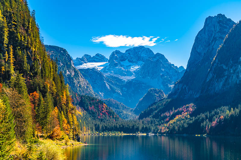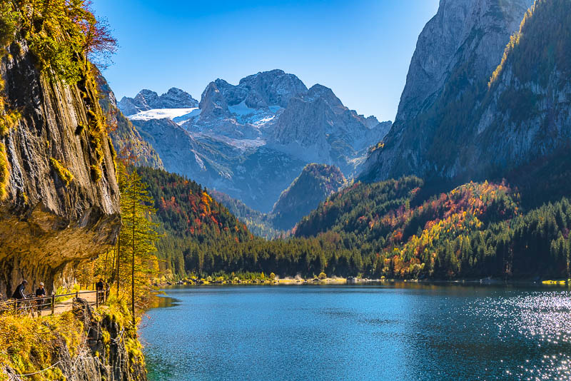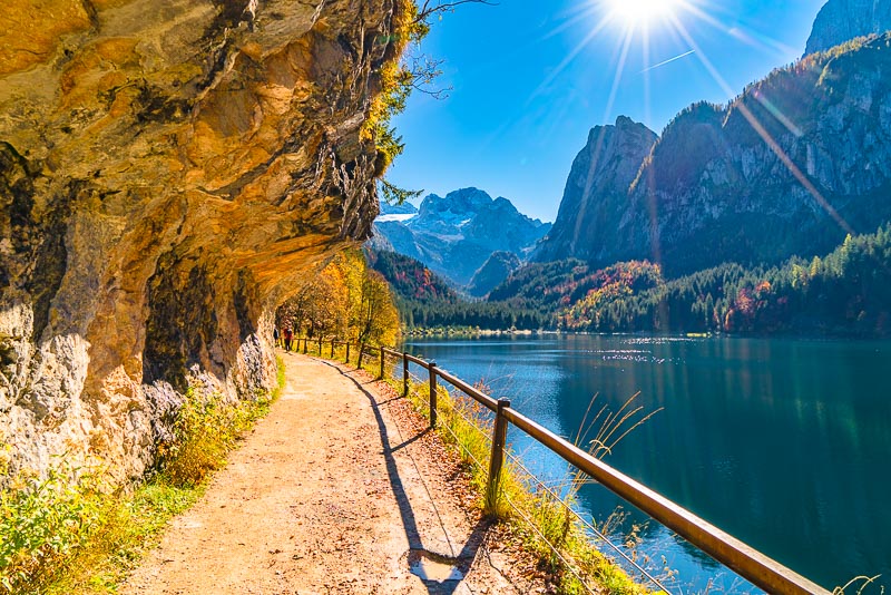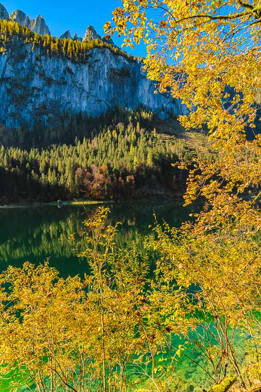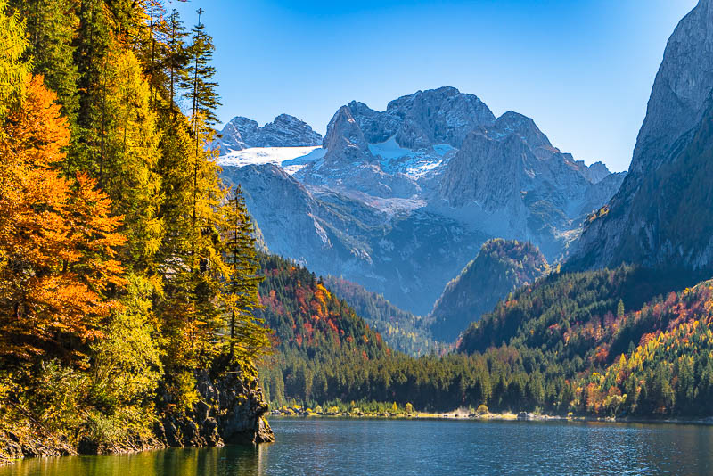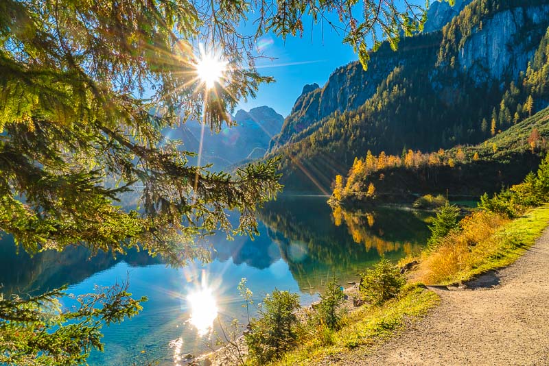 Now and then, also from this side of the lake, the Dachstein can be seen - exactly beneath the low standing sun.