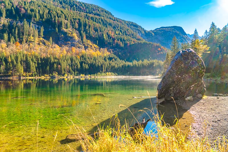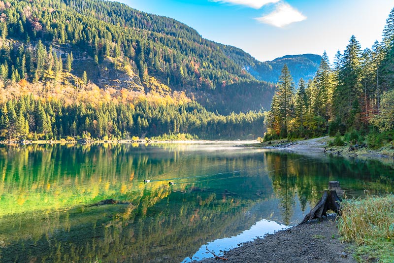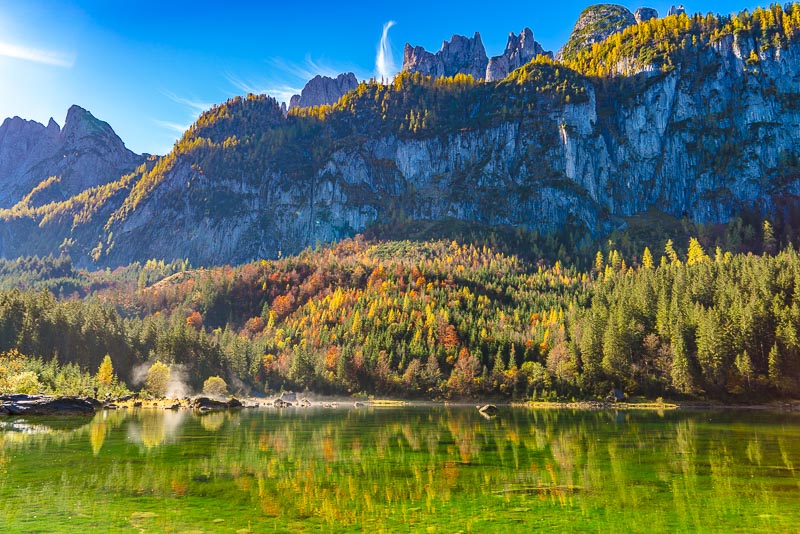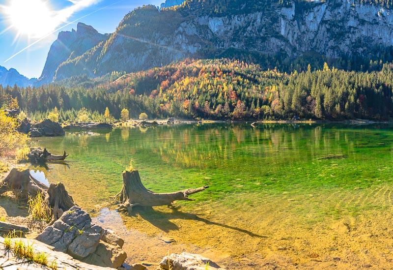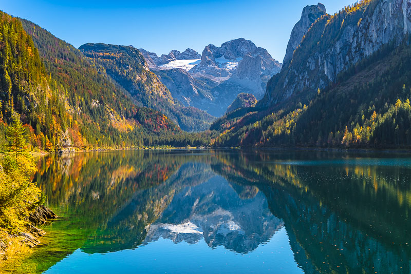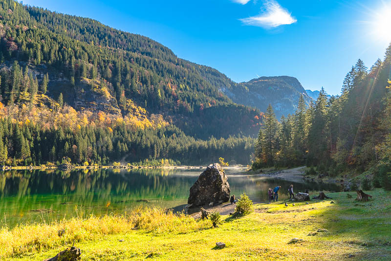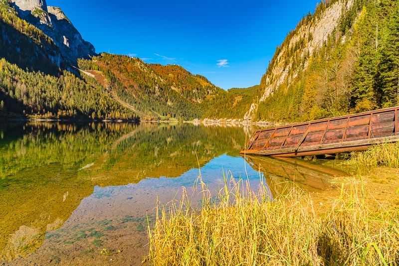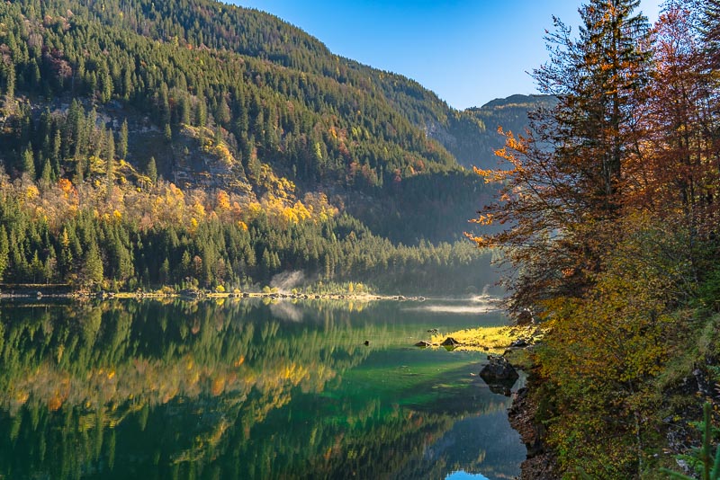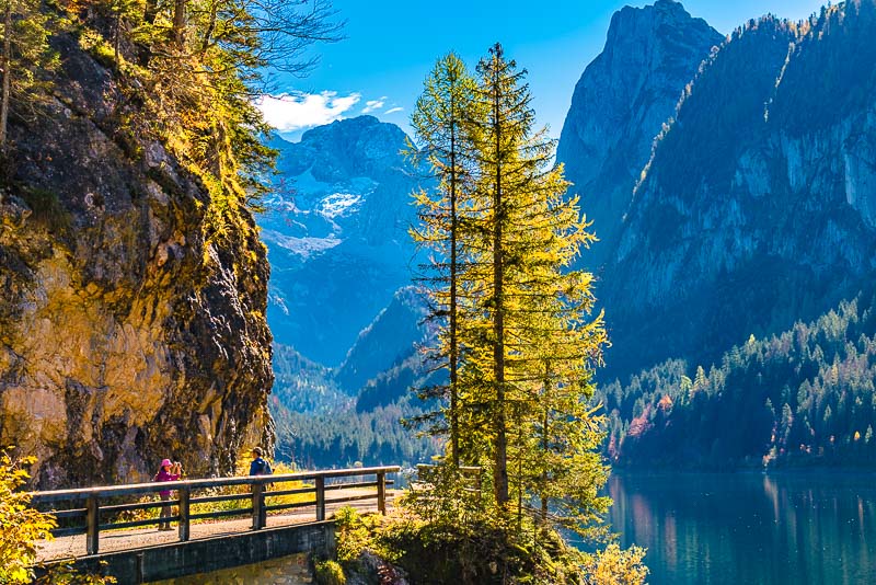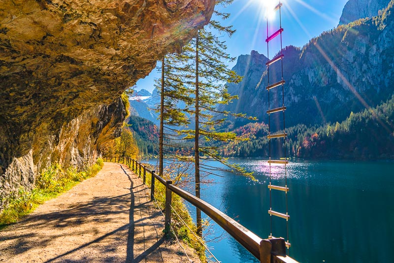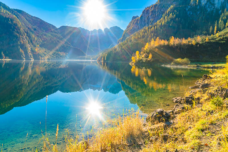 Now and then, also from this side of the lake, the Dachstein can be seen - exactly beneath the low standing sun.
