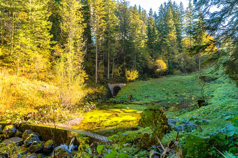 Though we arrave here a shortly after 9, the uppermost car park is nearly full wuth cars. Walking up to the dam, which lifts the water level only for a few metres.