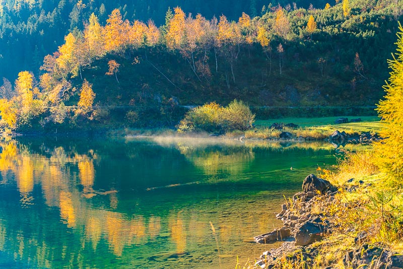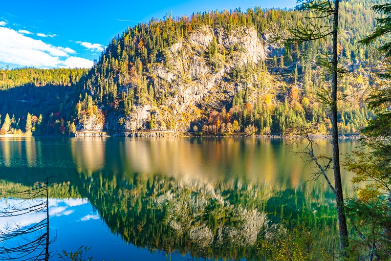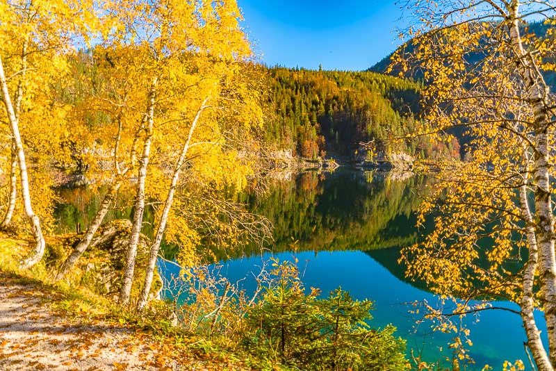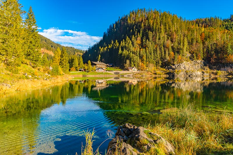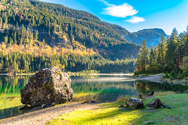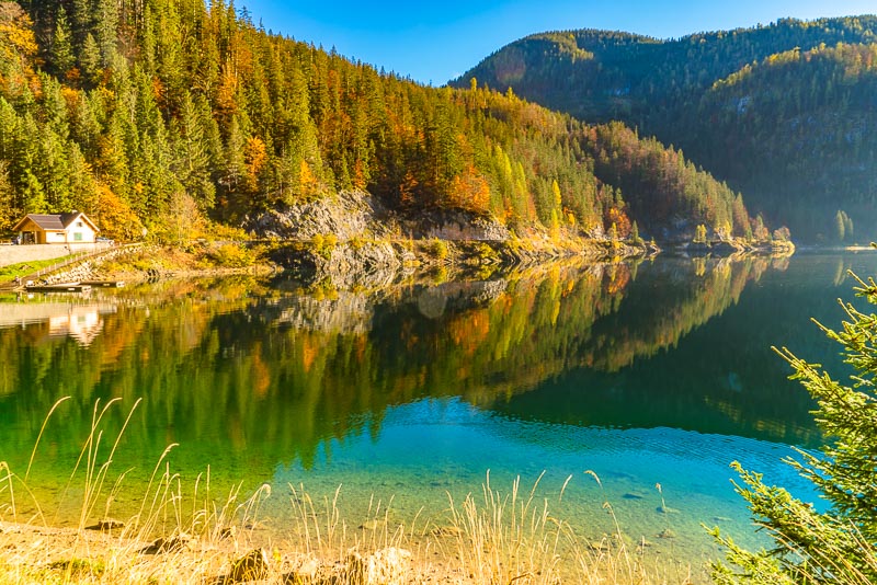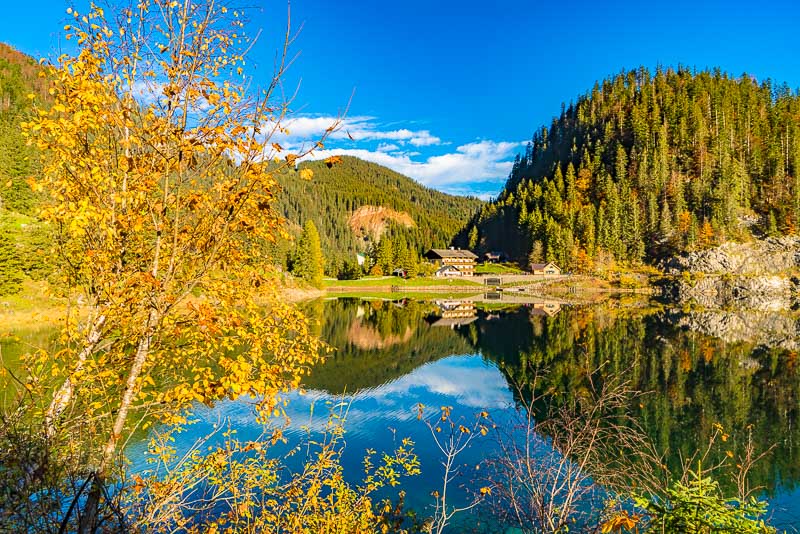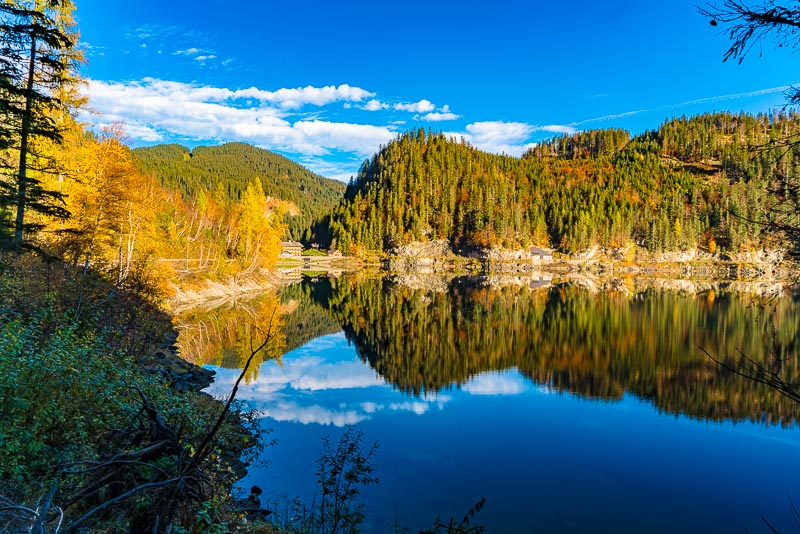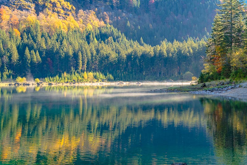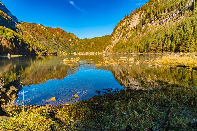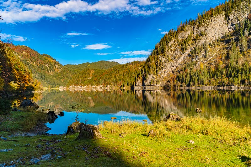 Steep mountain summits tower above the lake - the highest one is 1.800 m higher.