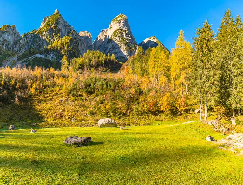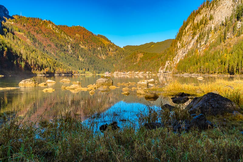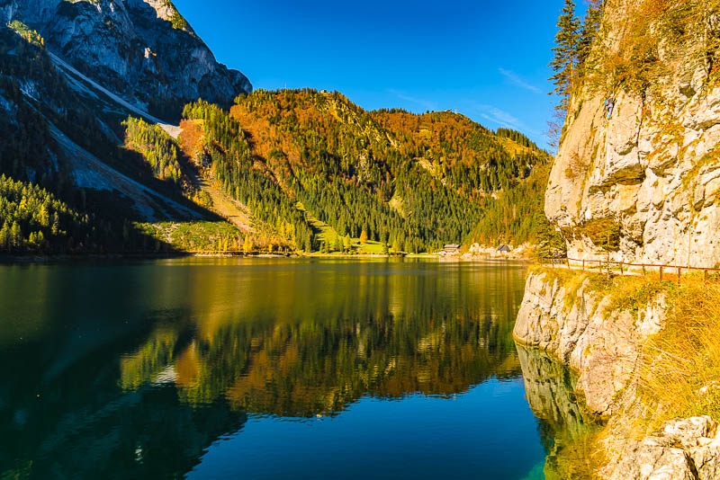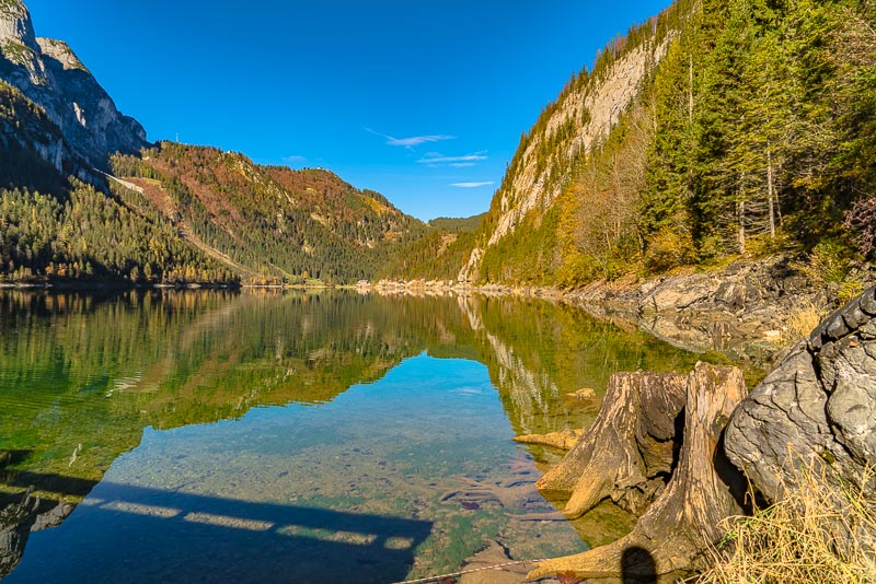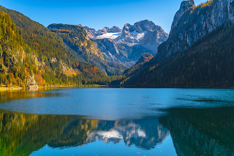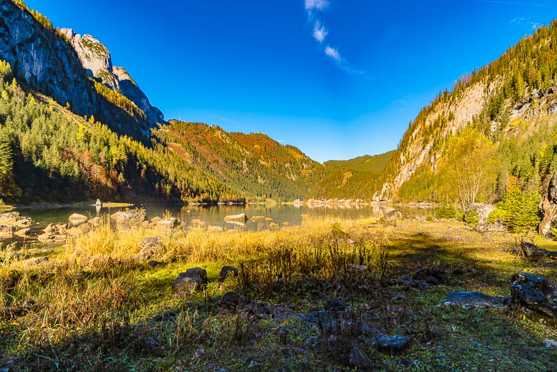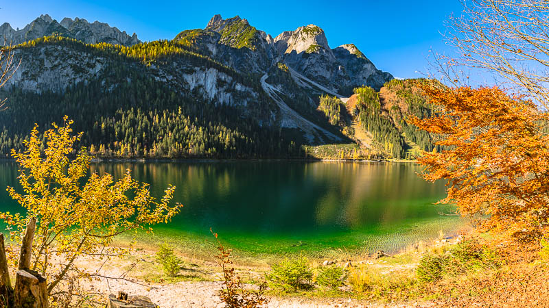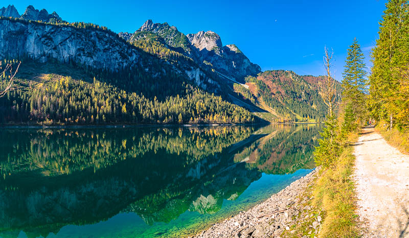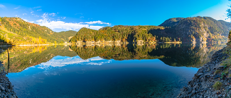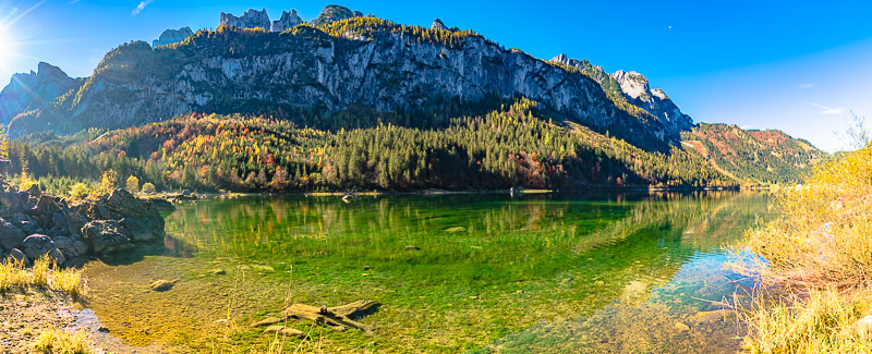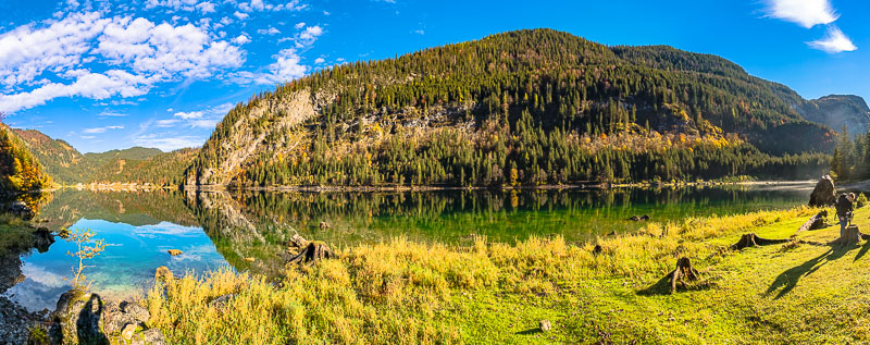 Panoramic picture of the lower part of Lake Gosau. Click here or into the picture for a larger display.