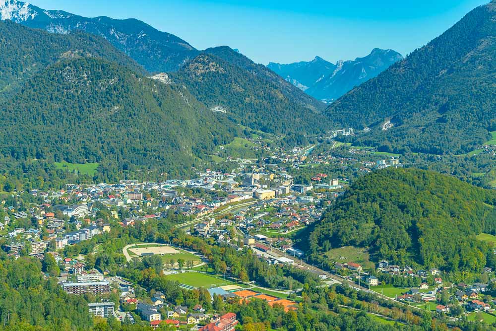 Von der Seilbahngondel aus hat man einen herrlichen Blick auf Bad Ischl.