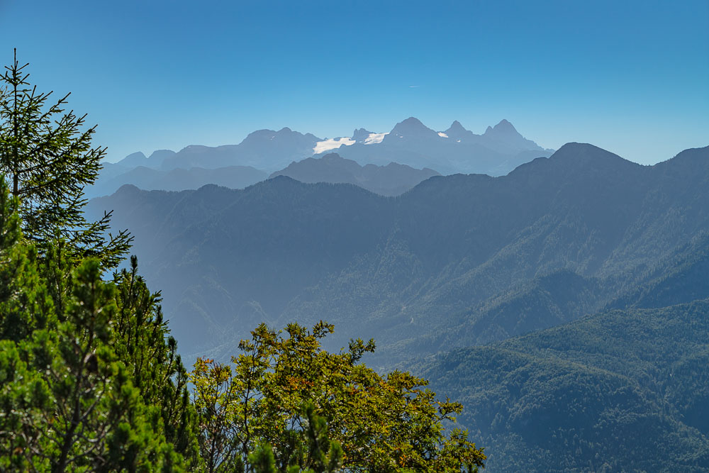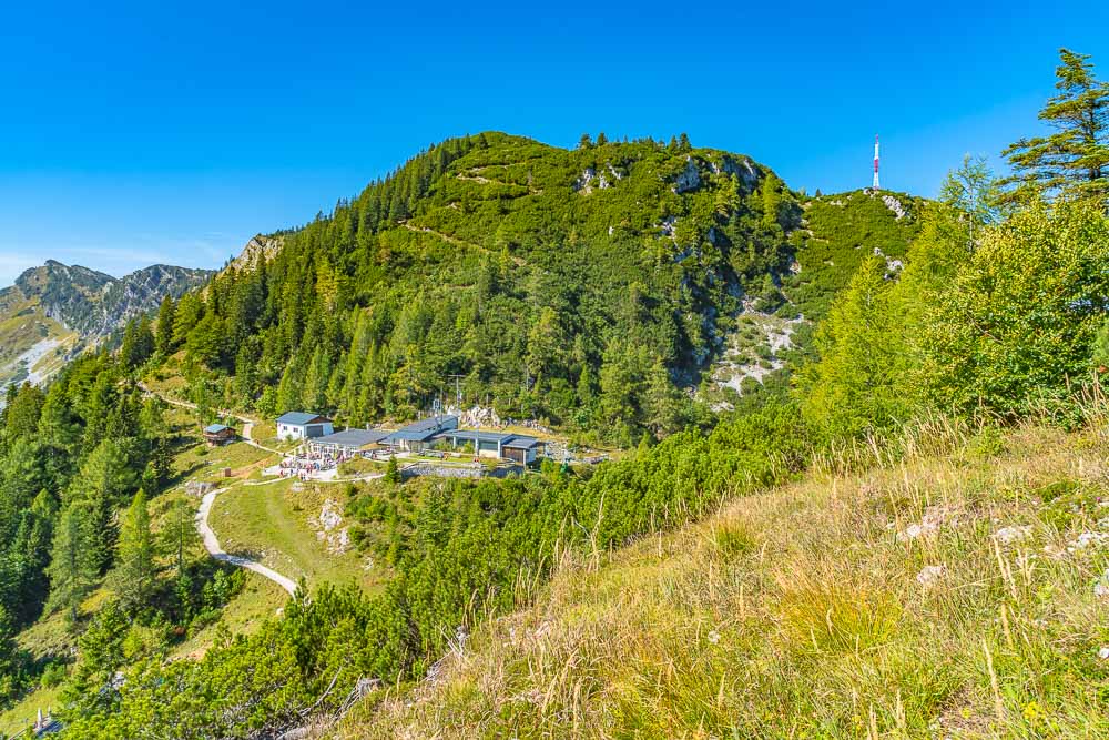 Oben angekommen, tut sich auf die andere Seite der Blick zum Dachstein auf.