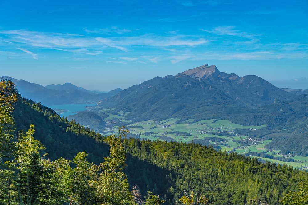 Nach links geht der Blick zum Wolfgangsee und zum Schafberg.