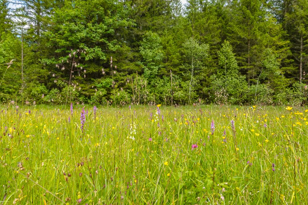Feuchte Wiesen, die zum Glück nur teilweise gedüngt und gemäht werden.