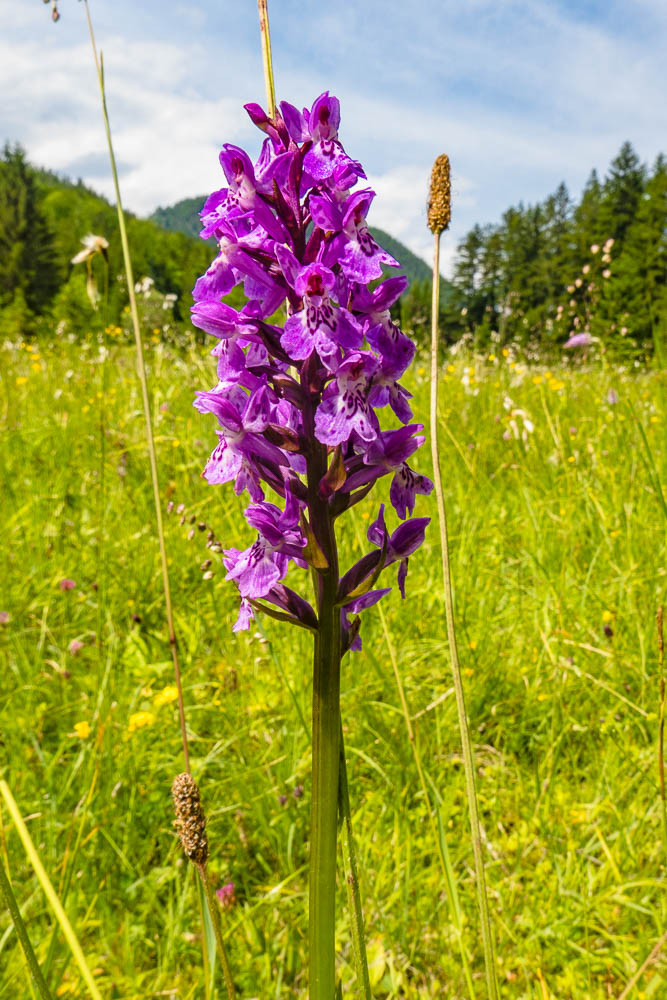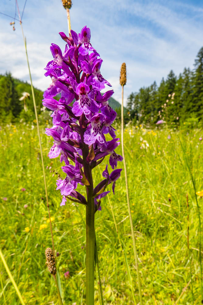 Breitblättriges Knabenkraut (Dactylorhiza majalis) auf einer weiteren Wiese, die als Kuhweide dient.