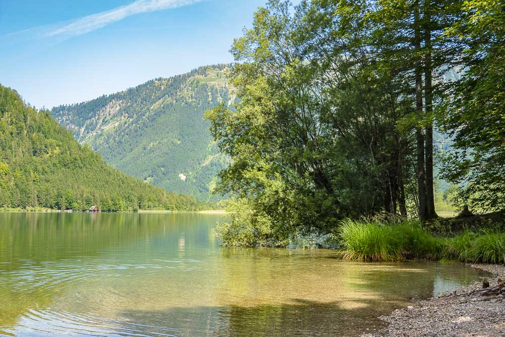 Blick vom Schotterbett des Rinnerbachs über den Offensee zu seiner Ostseite.