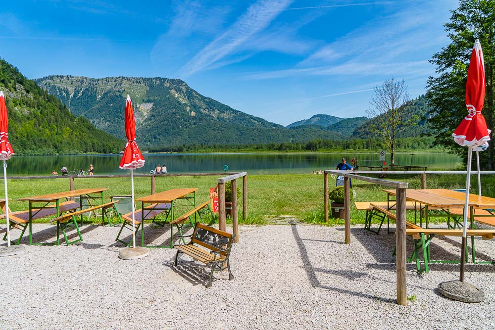 Am Südende des Sees gibt es eine kleine Jausenstation, die aber momentan nur an den Wochenenden offen hat.