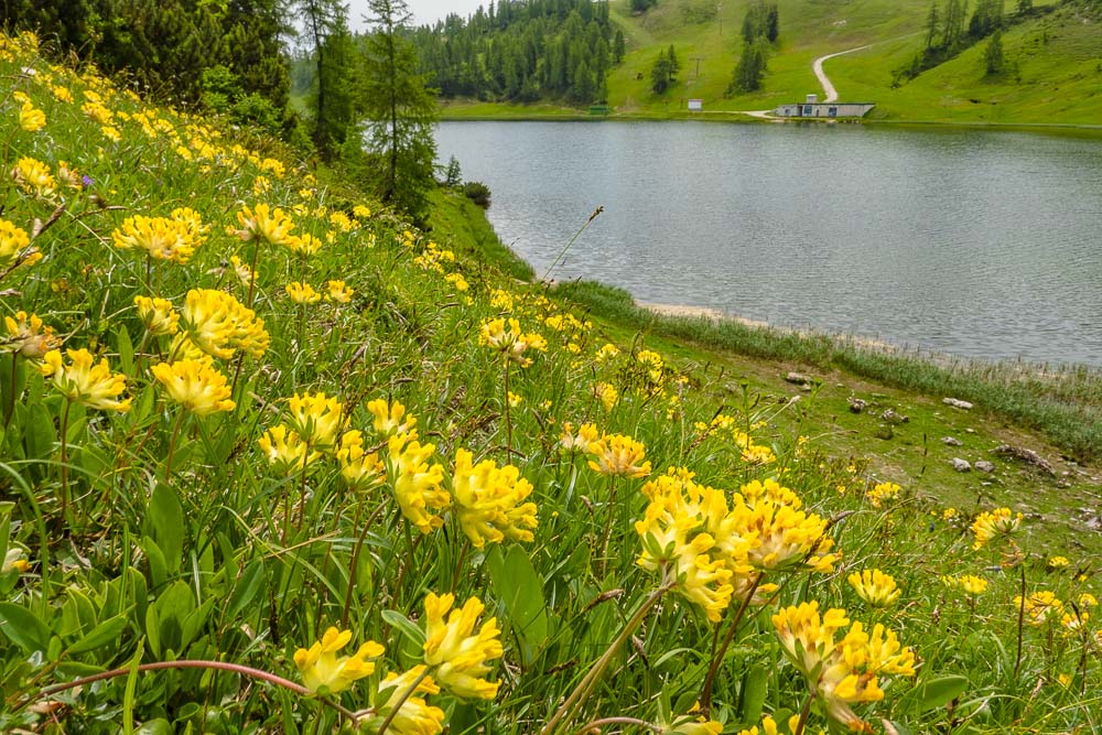 Unmengen von Alpen Wundklee (Anthyllis vulneraria subsp. alpicola)