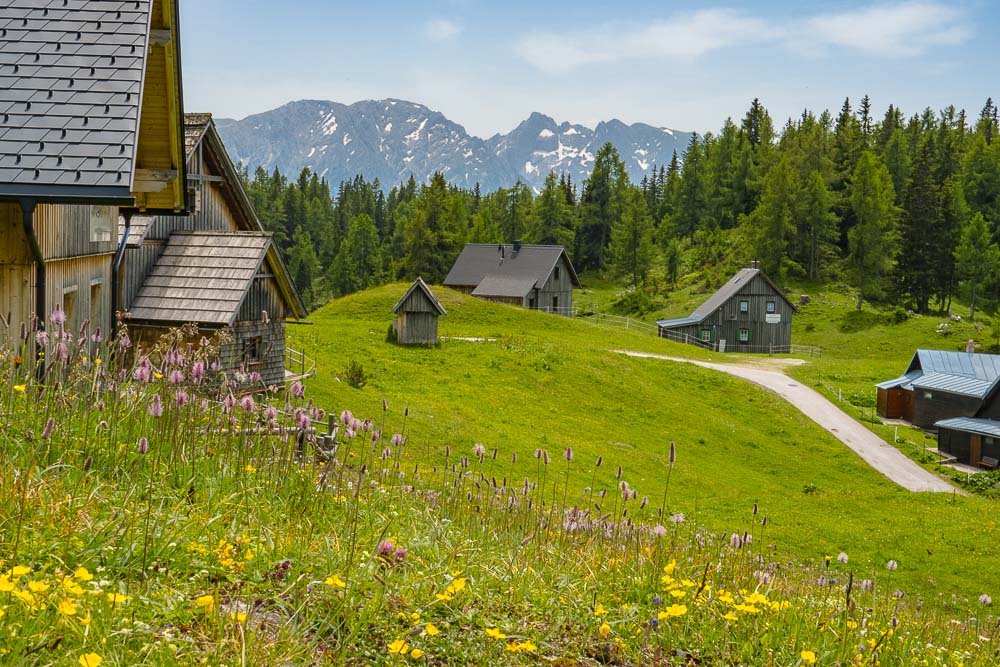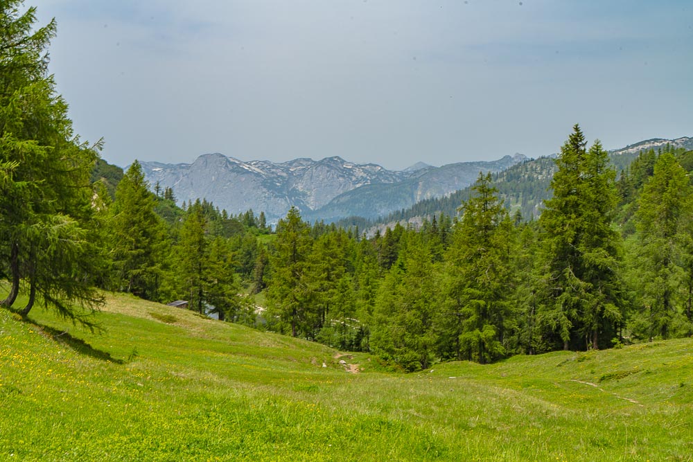 Blick zum Toten Gebirge, zum Grundlsee, der dazwischen liegt, sieht man von hier nicht hinunter.