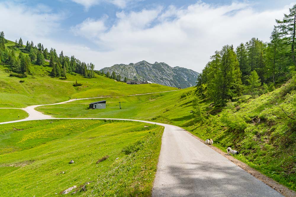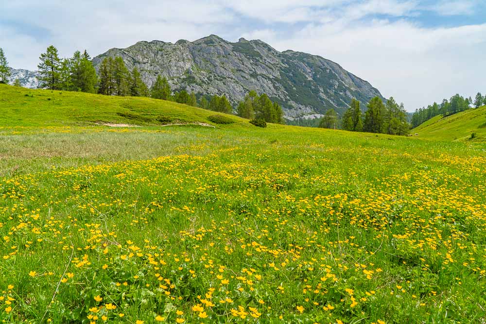 Fast zurück beim Parkplatz. Im Hintergrund der Grimming