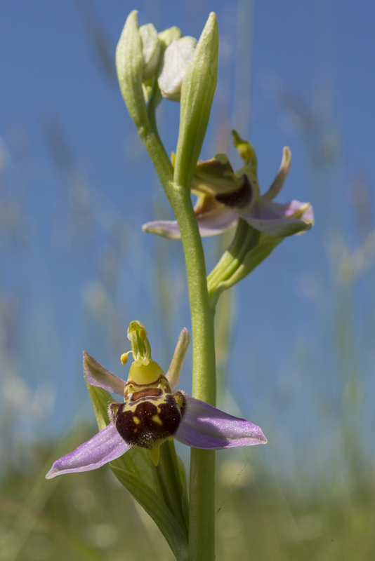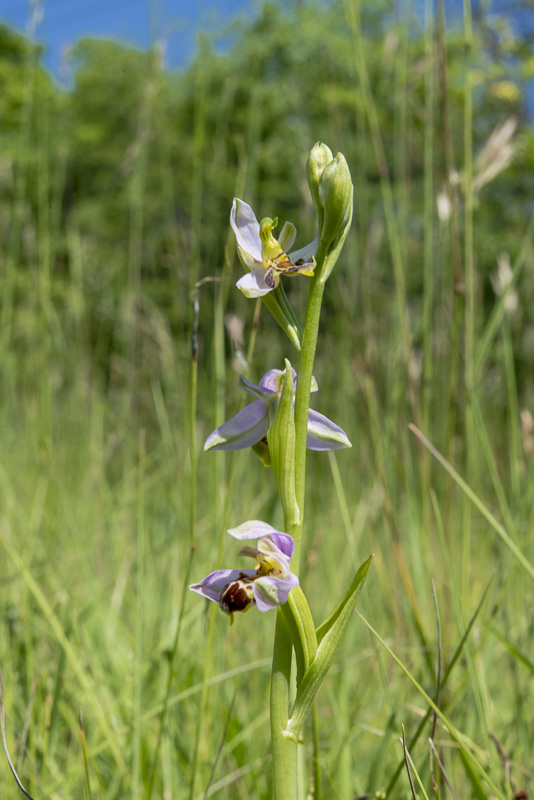 Bee orchid (Ophrys apifera). Last year, I found dozens of plants in this place, today I find four of them, after a prolonged search. Such fluctiations in the population is well known with orchids, no reason for concern.