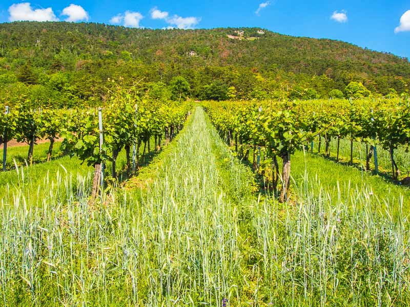 Wheat is grown between the vines.