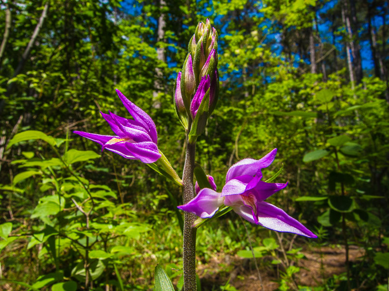 A short detour to the forest to find this red helleborine (Cephalanthera rubra) hat noch einiges an Blüten vor sich.