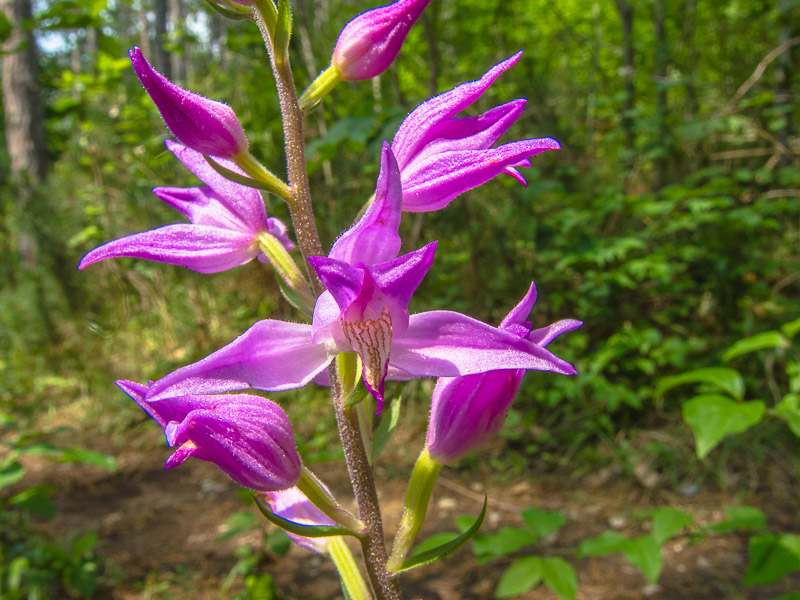 Red helleborine (Cephalanthera rubra) in the forest near the Eisenstein cave.