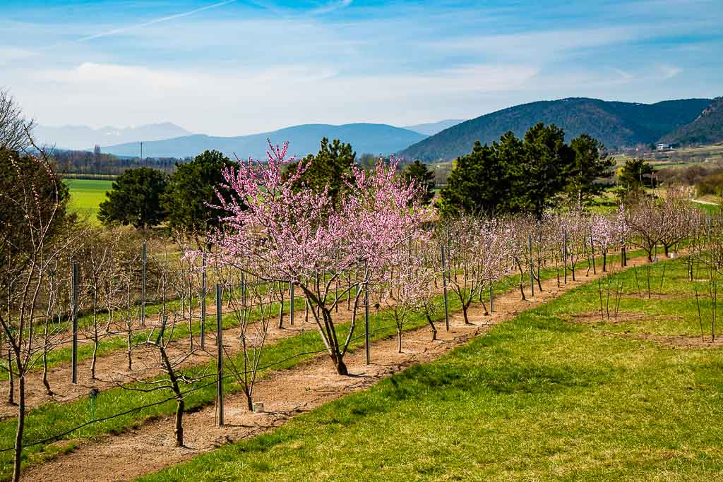 Fruit plantation at the outskirts of Brunn - peach trees in full flower.