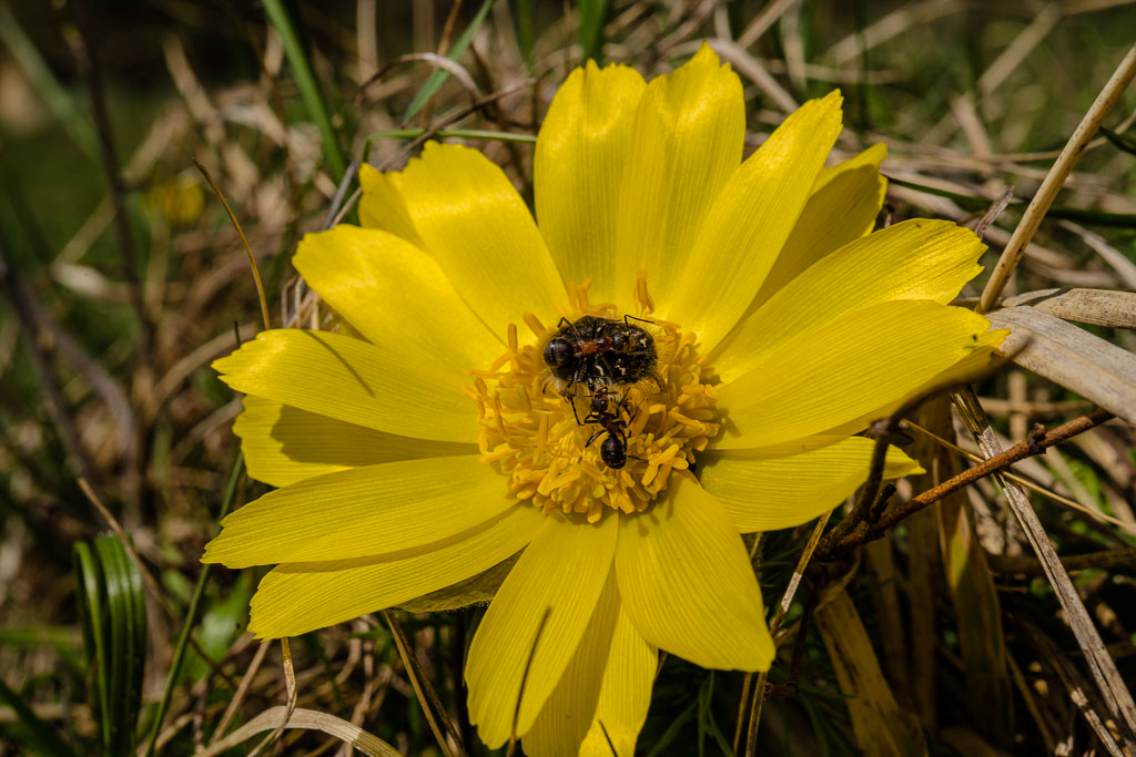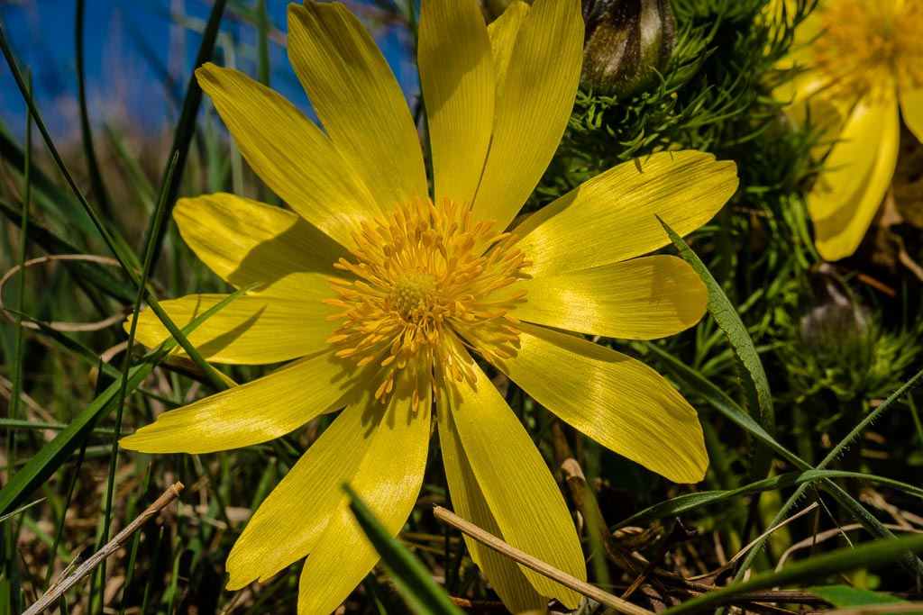 Spring adonis (Adonis vernalis) still in flower, though not yet at their best.