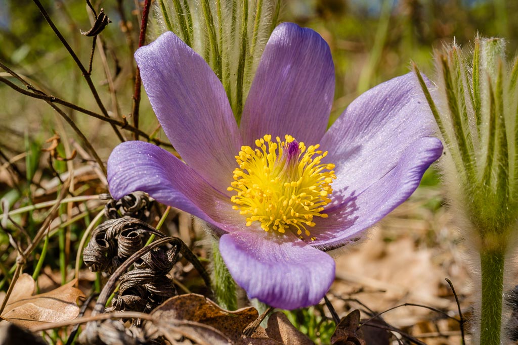 ... wheras the last of the Pasque flowers (Pulsatilla vulgaris) are still flowrishing.