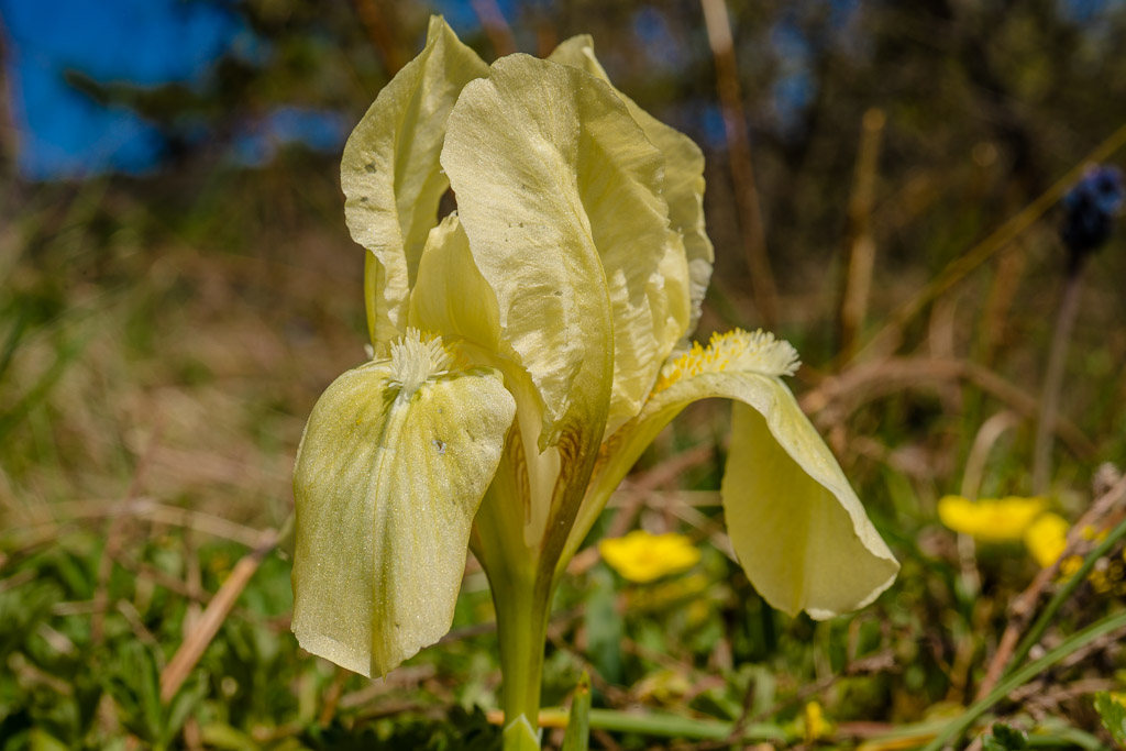 The first dwarf iris (Iris pumila) dare to come out, ...