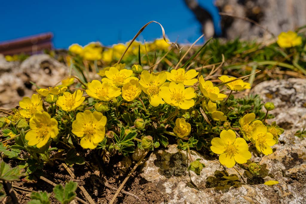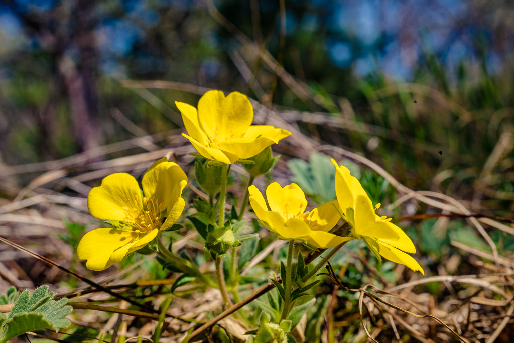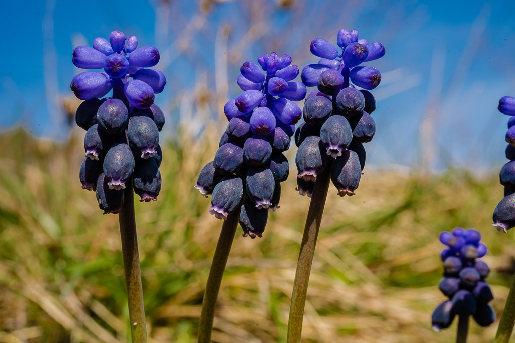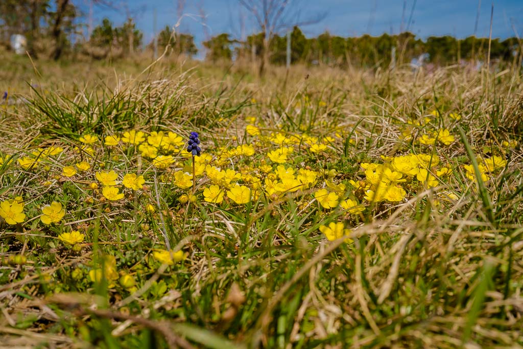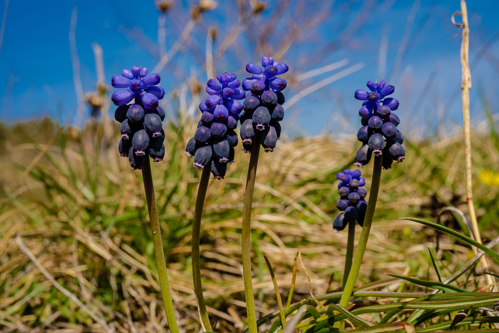 Spring cinquefoil (Potentilla neumanniana) and a common grape hyacinth (Muscari neglectum)