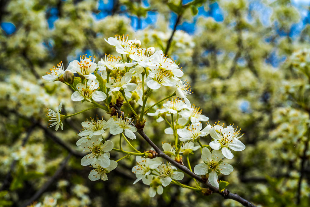 Unzählige Steinweichseln (Prunus mahaleb) sind gerade in voller Blüte.