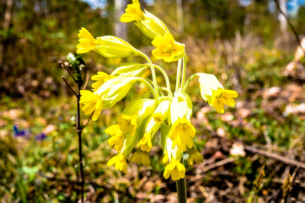 Ein größerer Fleck von Himmelschlüsseln (primula veris) mitten im Wald.