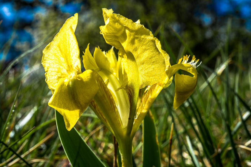 Beim Abstieg mache ich noch einen Umweg über die Iriswiese - hier Zwergiris (Iris pumila) in gelb.