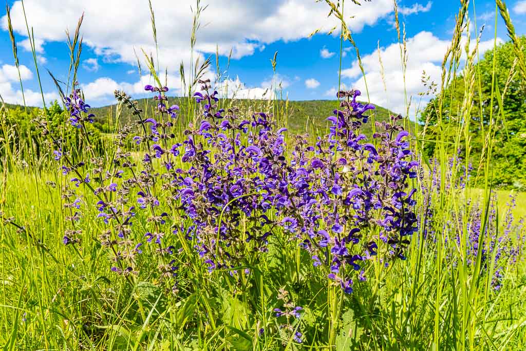 On the dam of the water pipepline meadow sage (Salvia pratensis)