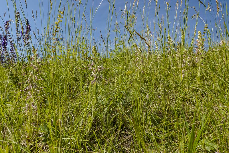 Die adriatische Riemenzunge (Himantoglossum adriaticum) kommt hier stellenweise in dutzenden Exemplaren auf kleinem Raum vor.