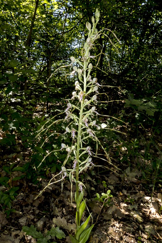 Diese adriatische Riemenzunge (Himantoglossum adriaticum) wächst mitten im Wald, oberhalb der Lilienwiese, ...