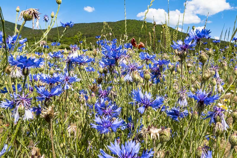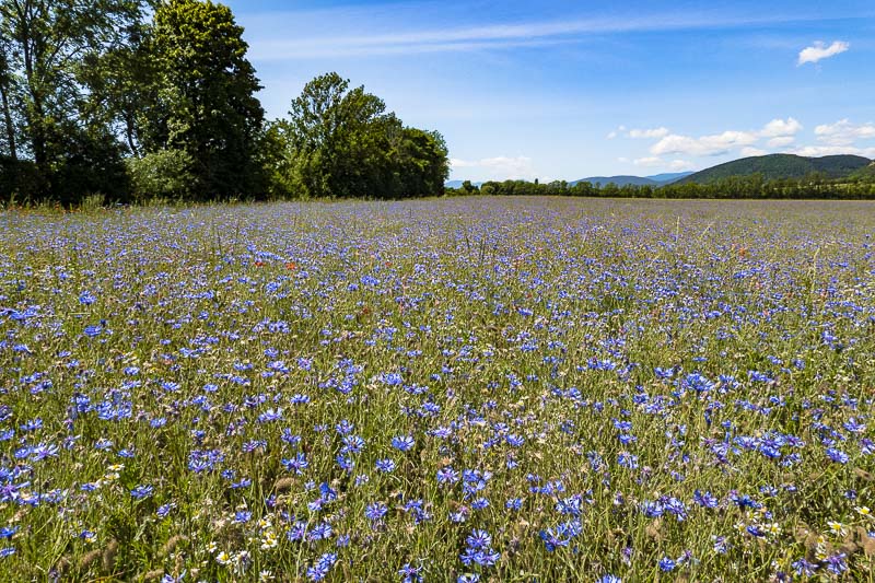 Von Ferne habe ich den blauen Schimmer gesehen und fahre nun wieder zu dem Feld, wo ich heuer schon einmal war.