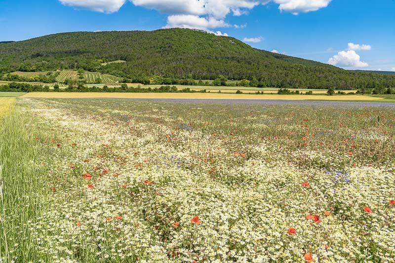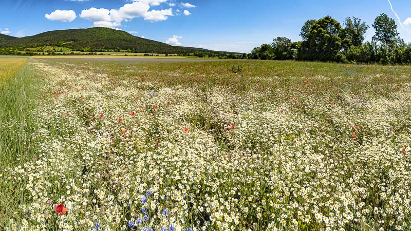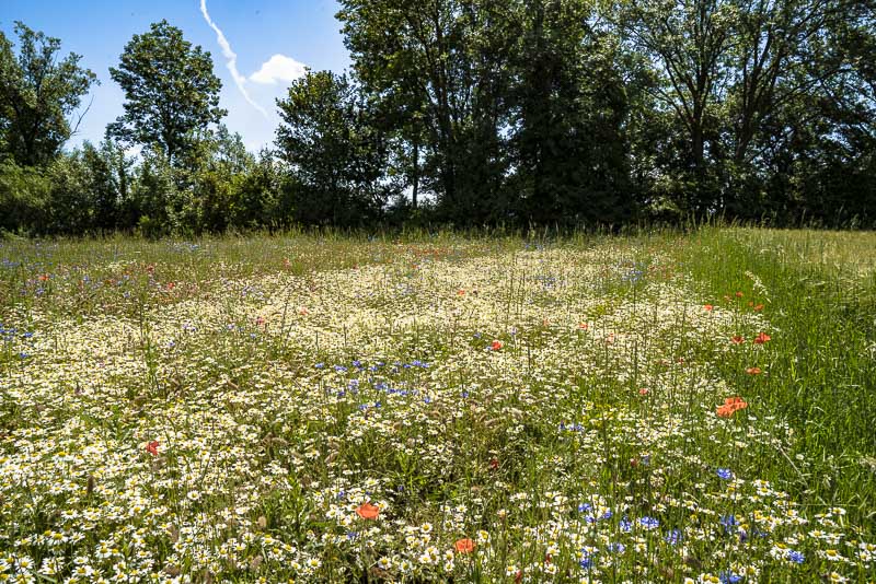 Ein Stück weiter dominieren die Kamillen das Bild.
