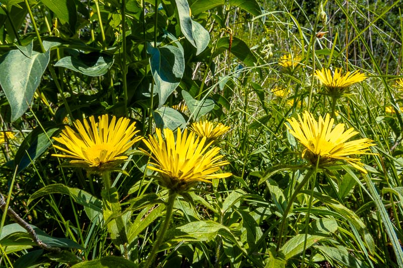 Rauhblättriger Alant (Inula hirta) am höchsten Punkt der Schwertlilienwiese.