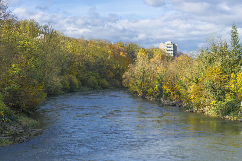 The river even is torrential and fast streaming like a mountain torrent. Limmat comes from the outflow of Lake Zürich.