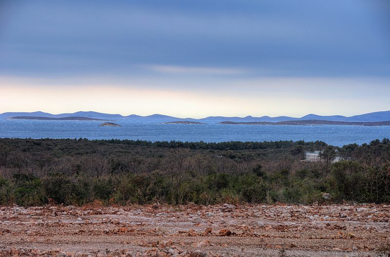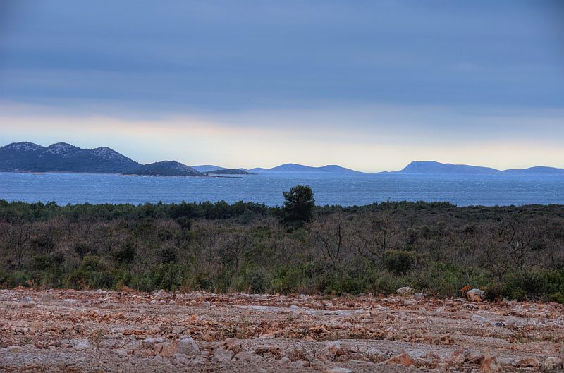 Vrgada to the left, on the horizon to the right the Cornati, a group of small and tiny rock islands, a favourite place for skippers.
