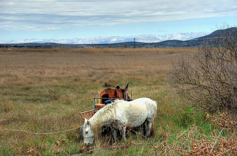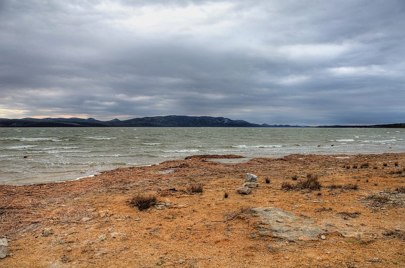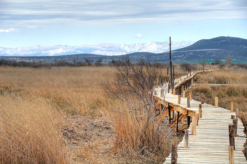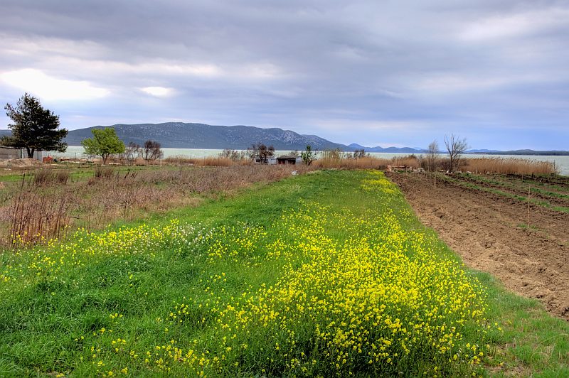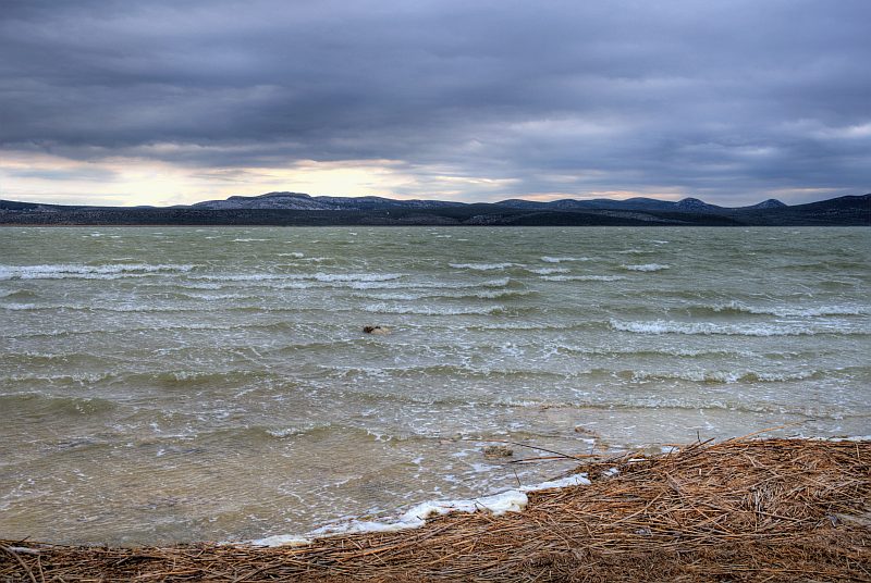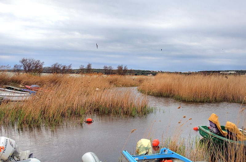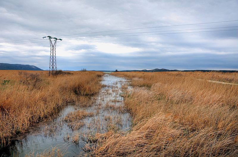 Today, we have a very strong, near gale force wind from the northeast, a downslope wind from the mountains, in this country called "Bora". Adding the clouds, I don´t drive too far away, in case of rain. My choice is Vransko Jezero, a flat fresh-water lake rather close to Biograd, easily accessible by bicycle.