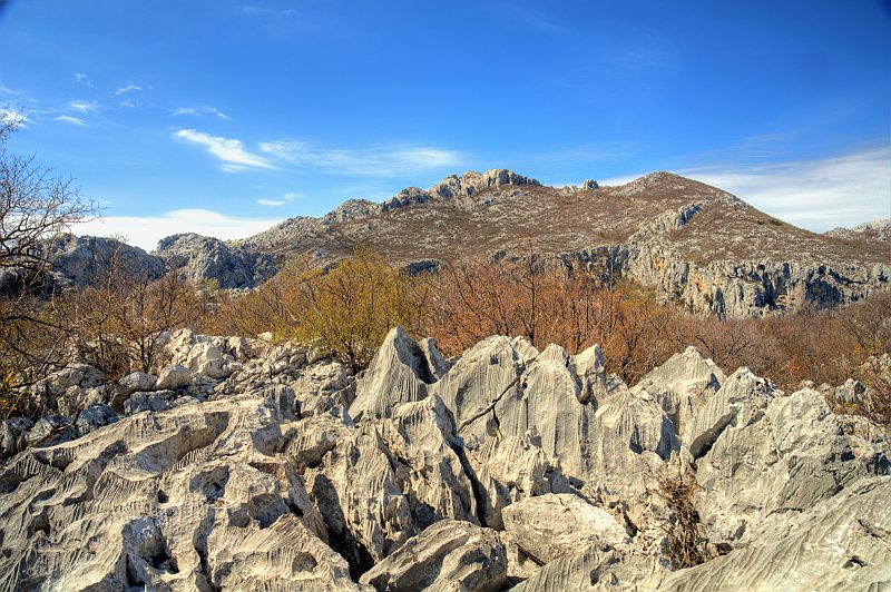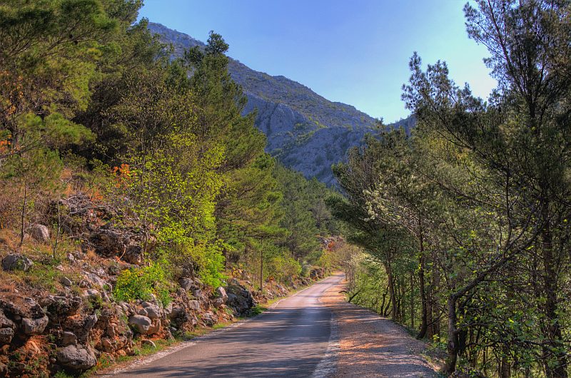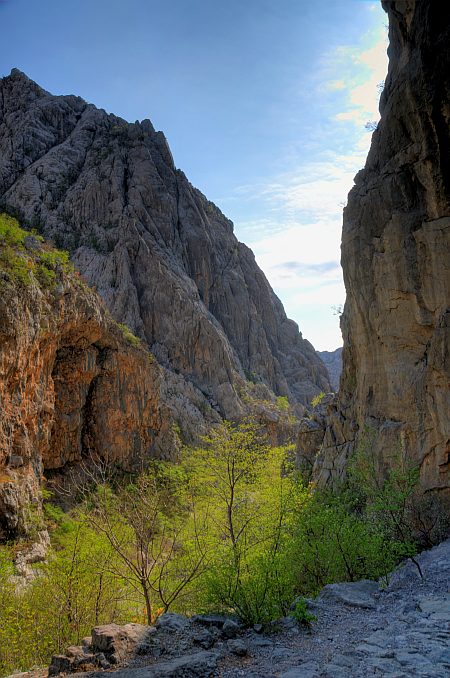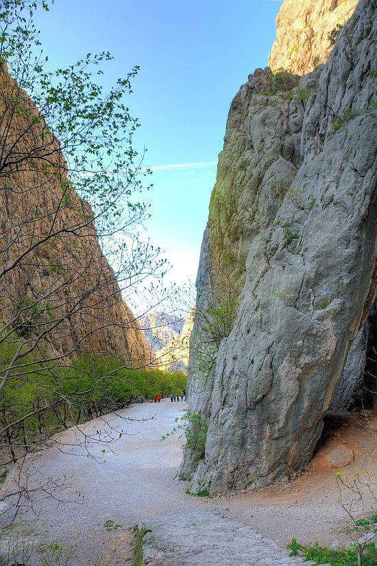 The Velebit mountains are situated along the Adriatic coast from Senj (opposite the southern top of the island of Krk) till about Zadar. I drive from Biograd about 70 km, first on the highway til Maslenica, then along the coastal road till Seline/Starigrad. There, the two gorges Vela Paklenica ("Big Paklenica") and Mala Paklenica ("Small Paklenica") are opening to the sea. The area was declared a national park in 1985 and exemplary developed.