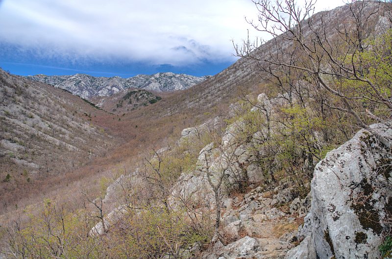 Now having passed the saddle, the path leads along he slopes coming down from Veliki Kuk and I get a more free view to the main ridge.