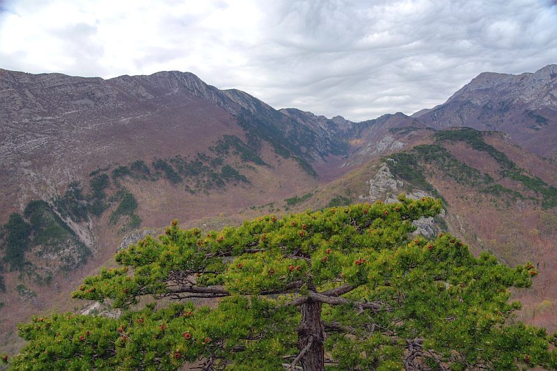 View over the valley. Up here, the same pine species is growing as at home in Winzendorf: Austrian ("Black") Pine, sometimes growing in the same, funny umbrella like fashion as home.