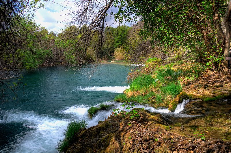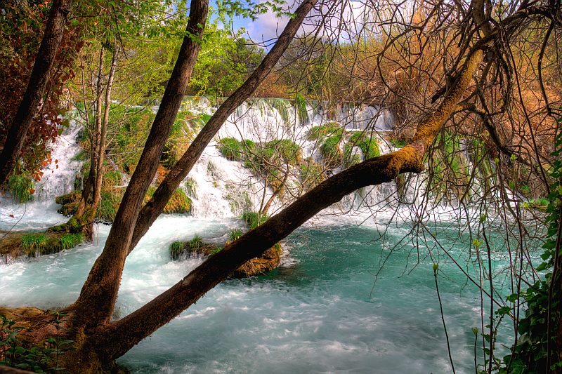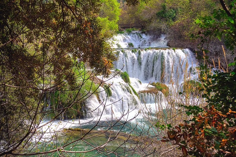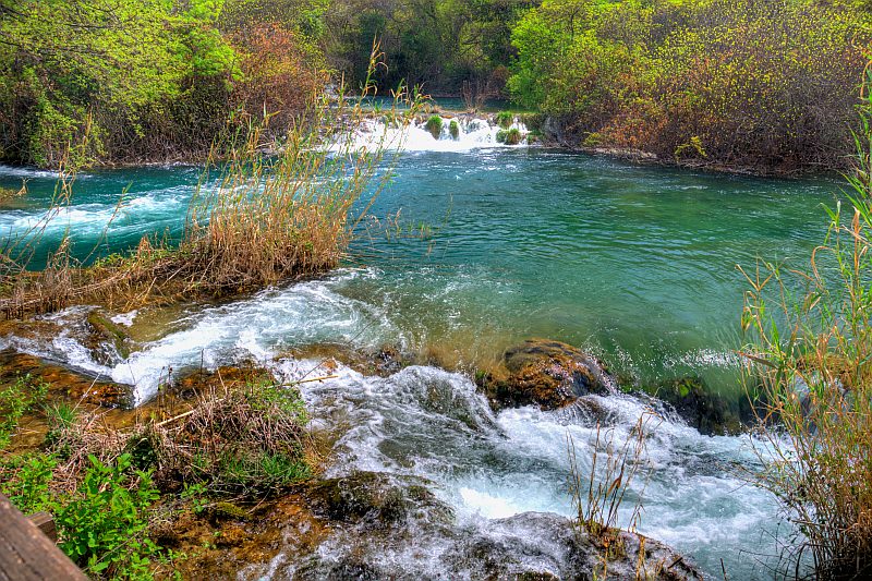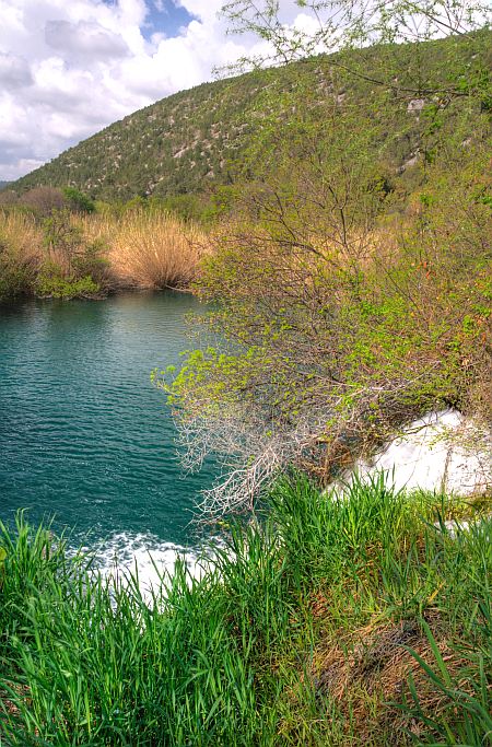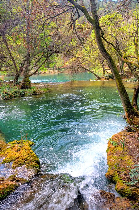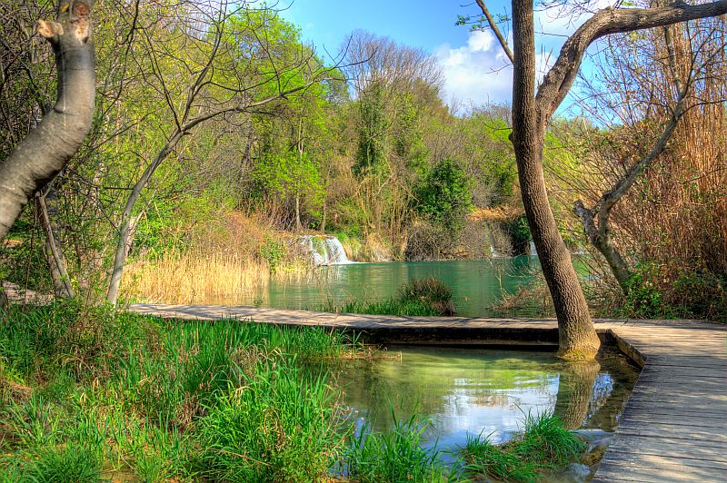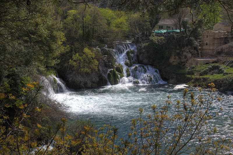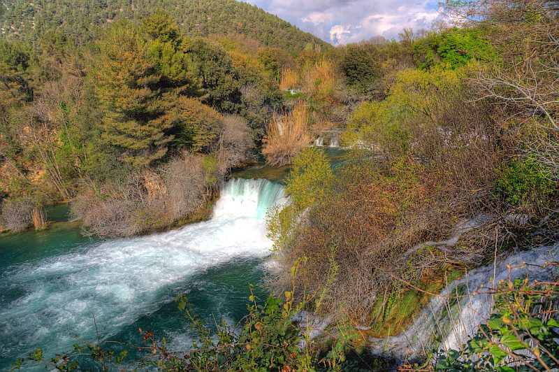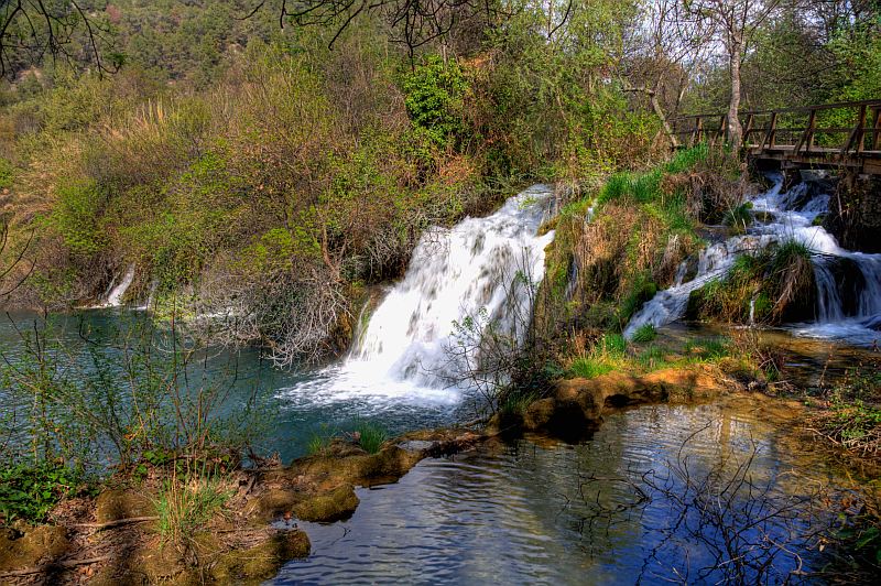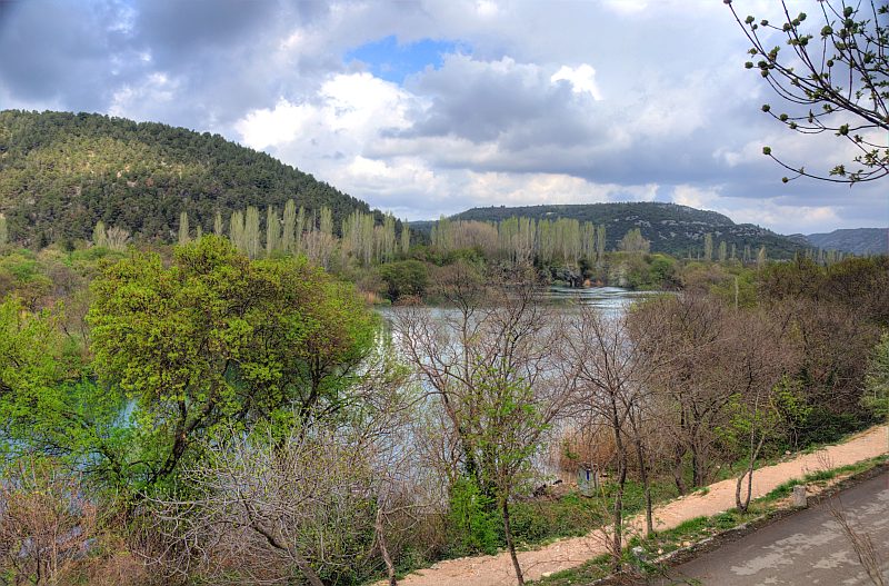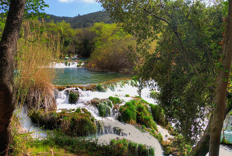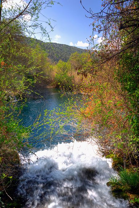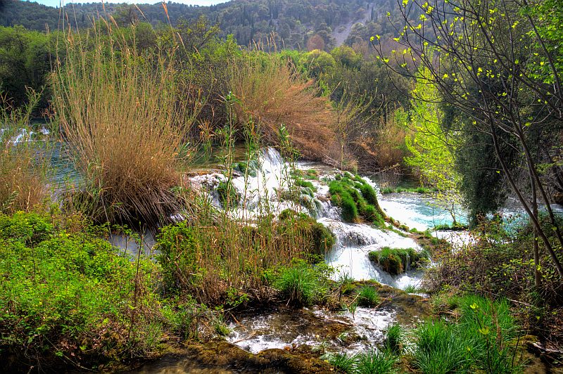 It took me some effort to persuade my family to do this half - day trip to the Krka waterfalls. They did not regret however in any way. We drive the coastal road from Biograd to Šibenik, where we follow the sings into the land to the waterfalls. At the entrance of the national park, we park the car, pay the entrance fee (80 Kuna for grown ups, 60 for the kids) and walk down the good footpath down to the Skradinski Waterfall (Skaradinski Buk). Though this one is only one of several waterfalls (or we should say waterfall systems!), but I suppose this one is the biggest an most beautiful. It contains multiple small and medium sized waterfalls inmidst an alluviual forest and a few larger, main falls on the orographic left side.