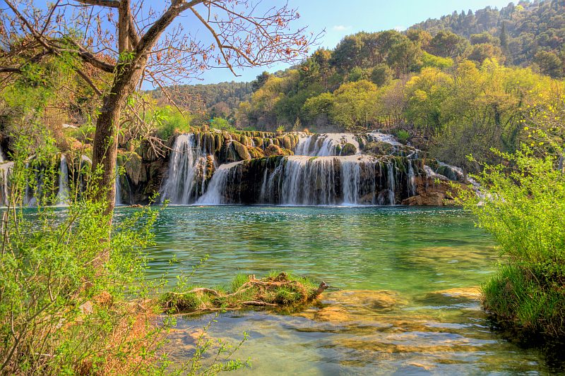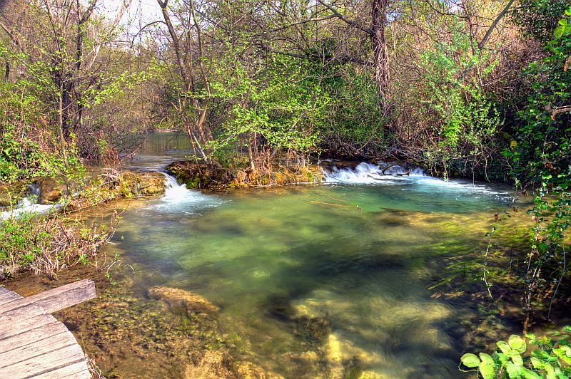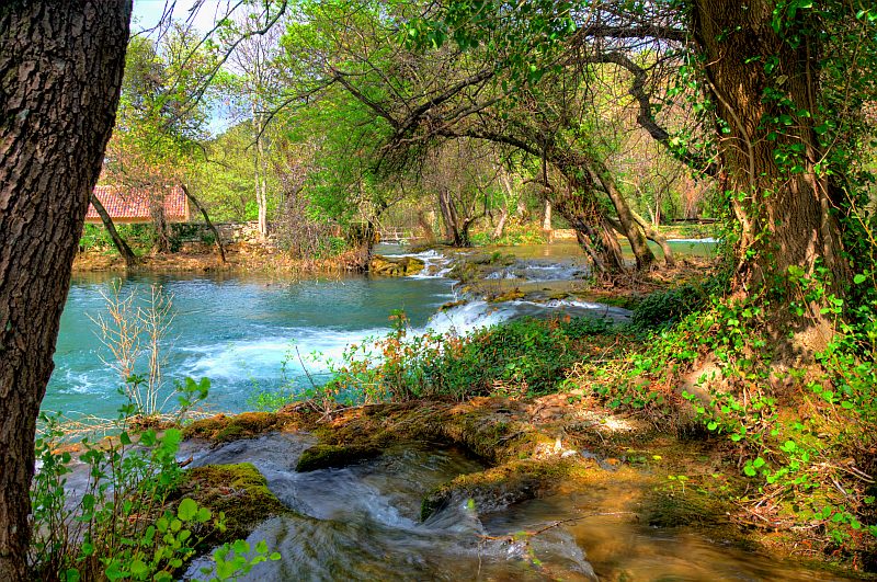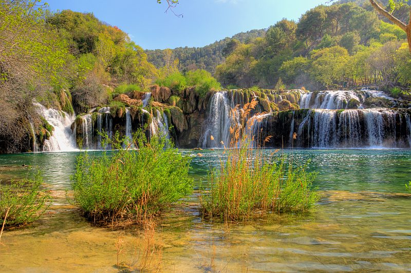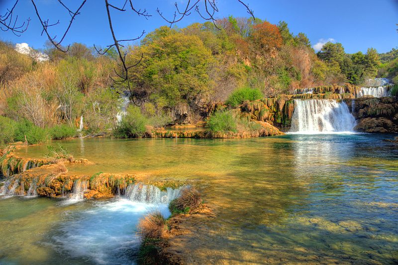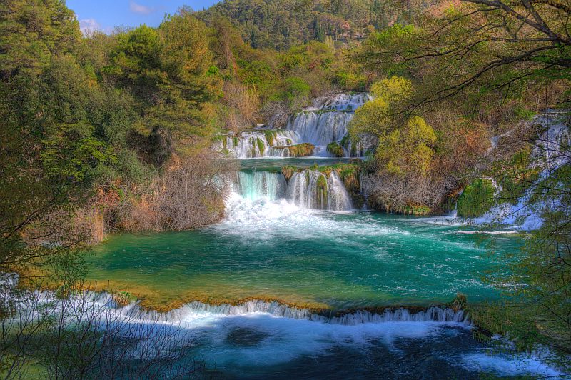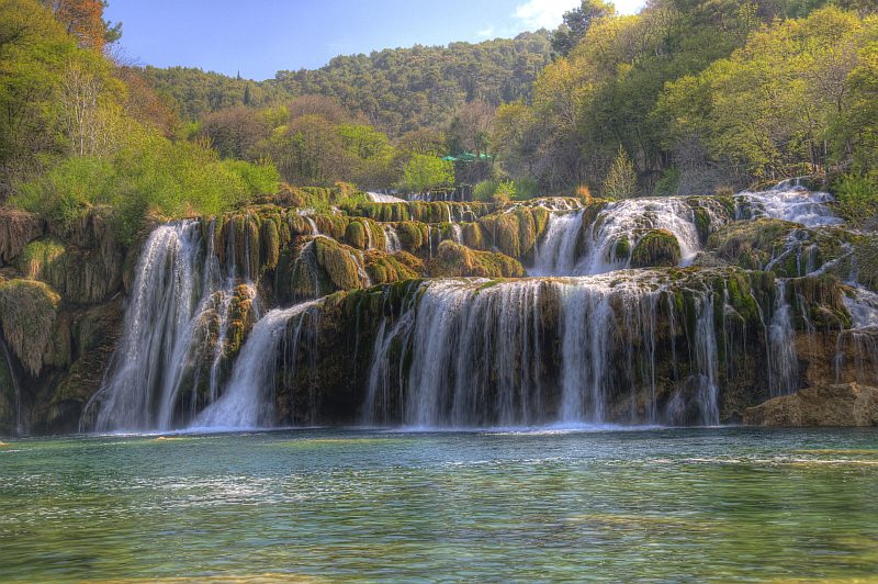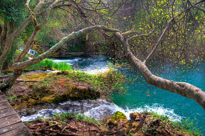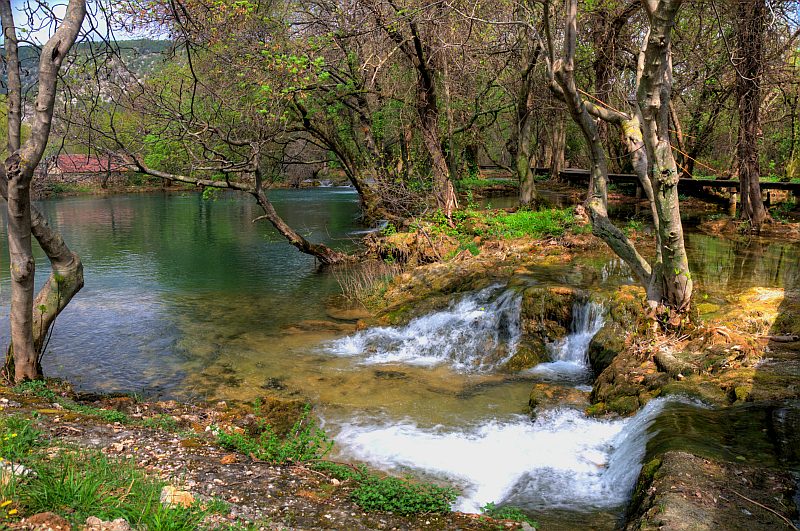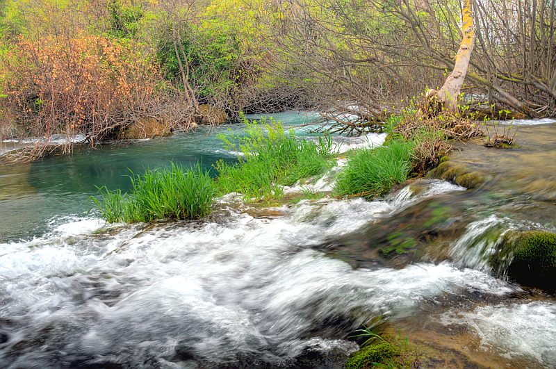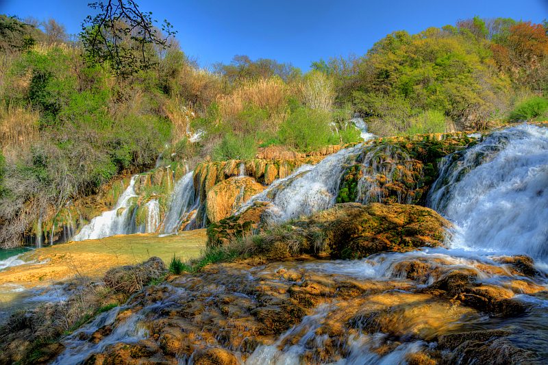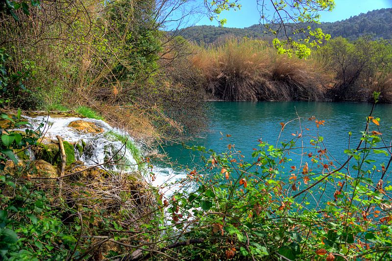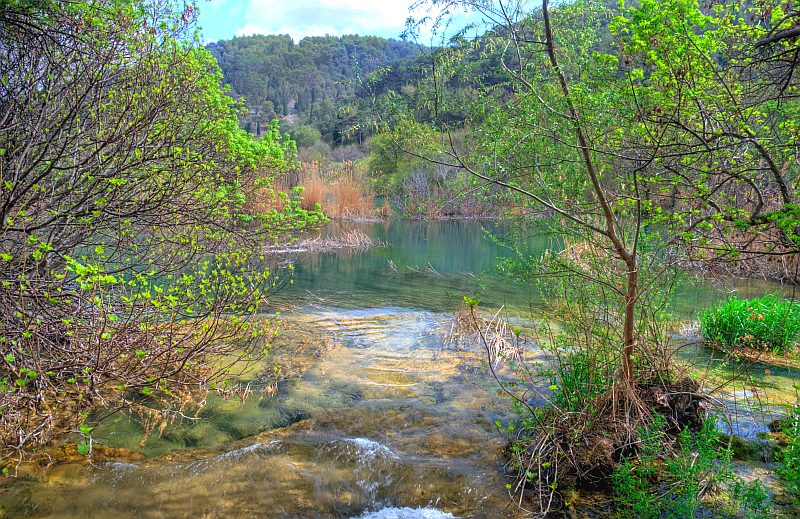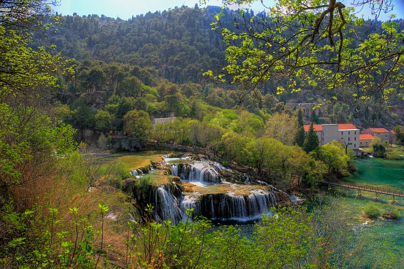 It took me some effort to persuade my family to do this half - day trip to the Krka waterfalls. They did not regret however in any way. We drive the coastal road from Biograd to Šibenik, where we follow the sings into the land to the waterfalls. At the entrance of the national park, we park the car, pay the entrance fee (80 Kuna for grown ups, 60 for the kids) and walk down the good footpath down to the Skradinski Waterfall (Skaradinski Buk). Though this one is only one of several waterfalls (or we should say waterfall systems!), but I suppose this one is the biggest an most beautiful. It contains multiple small and medium sized waterfalls inmidst an alluviual forest and a few larger, main falls on the orographic left side.