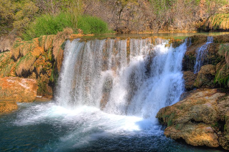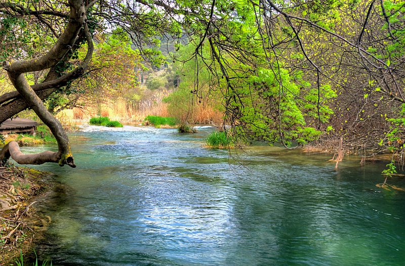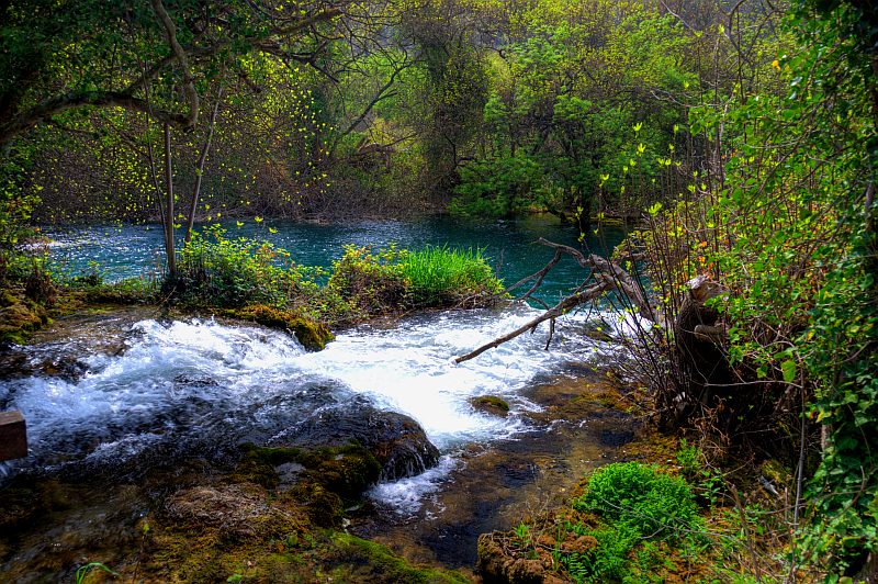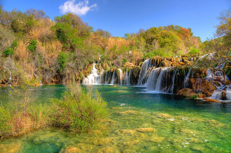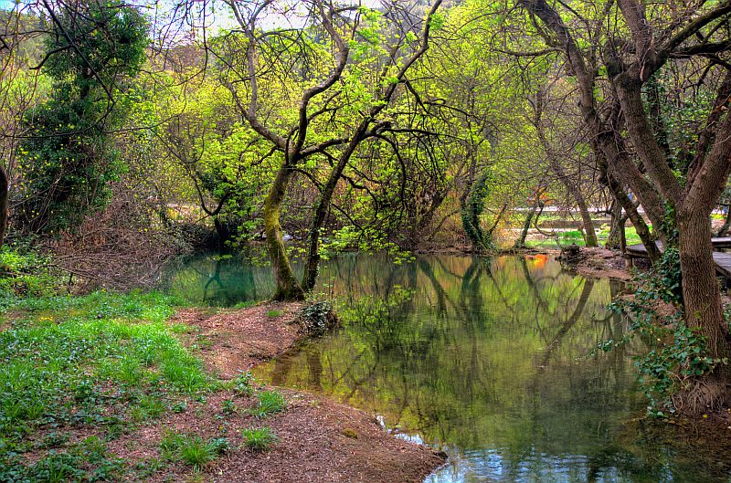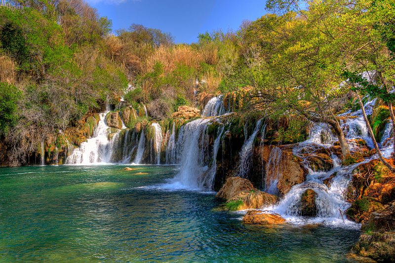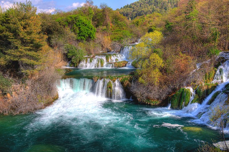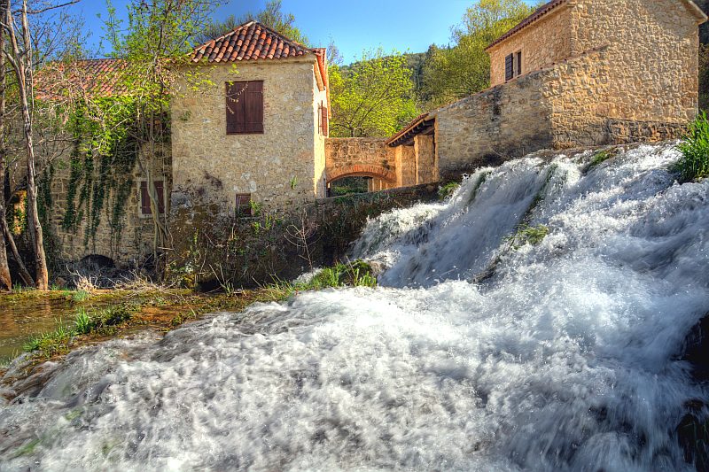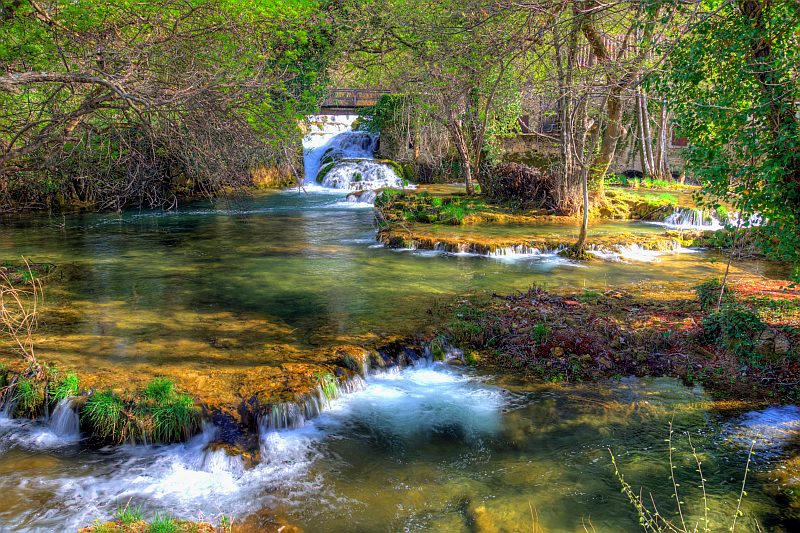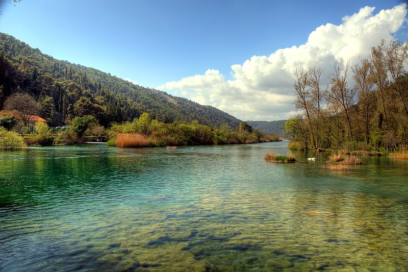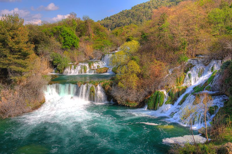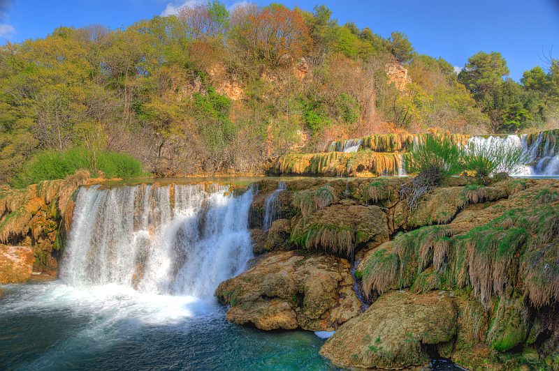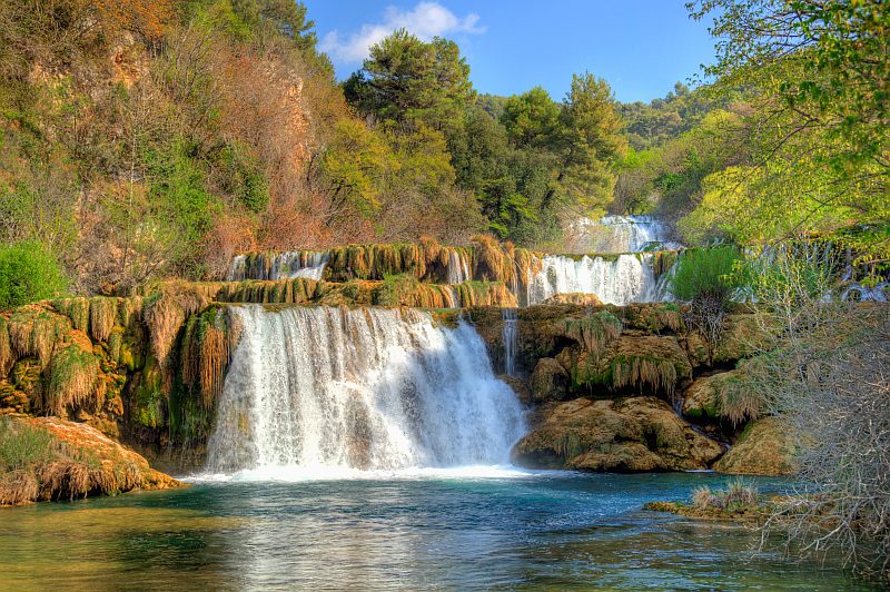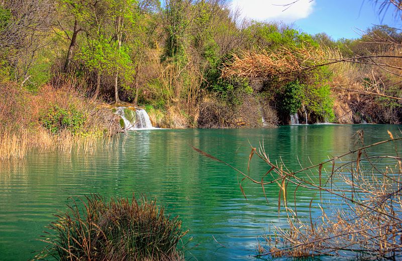 It took me some effort to persuade my family to do this half - day trip to the Krka waterfalls. They did not regret however in any way. We drive the coastal road from Biograd to Šibenik, where we follow the sings into the land to the waterfalls. At the entrance of the national park, we park the car, pay the entrance fee (80 Kuna for grown ups, 60 for the kids) and walk down the good footpath down to the Skradinski Waterfall (Skaradinski Buk). Though this one is only one of several waterfalls (or we should say waterfall systems!), but I suppose this one is the biggest an most beautiful. It contains multiple small and medium sized waterfalls inmidst an alluviual forest and a few larger, main falls on the orographic left side.