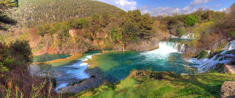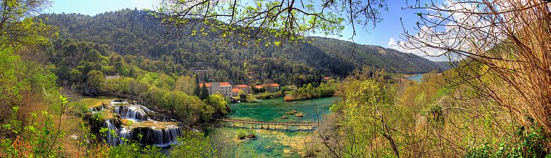 Panoramic view on the lower part of the main waterfalls of Skradinski Buk. Click here or into the picture for a larger version..