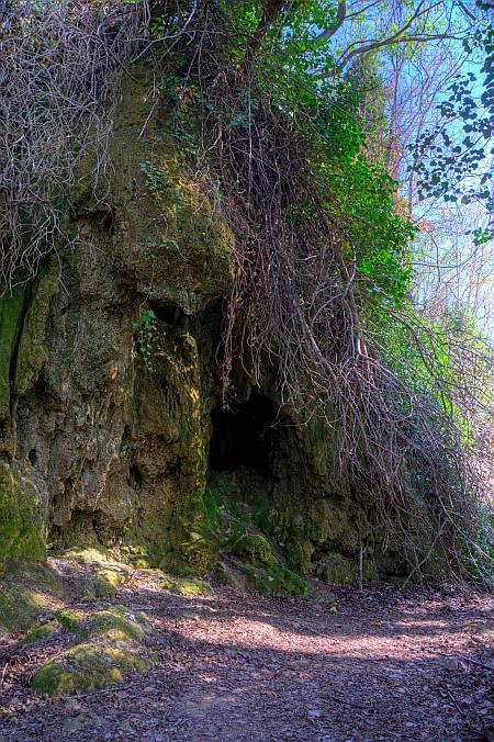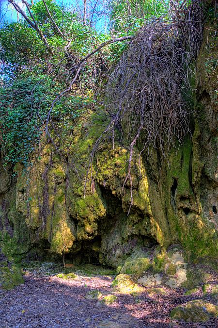 This seems to be a waterfall that has fallen dry (now? at every time?). Karst formations and moss - drip stones!