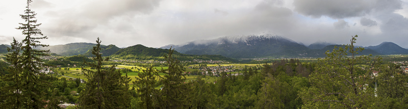 Southern 180 degree panoramic picture from the castle of Bled. Click here or into the picture for a larger display